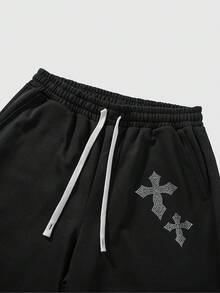 Street Life Men's Cross Religious Rhinestone Slogan Print Sweatpants