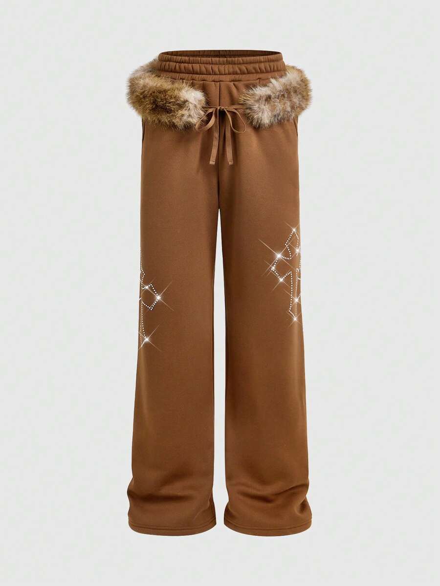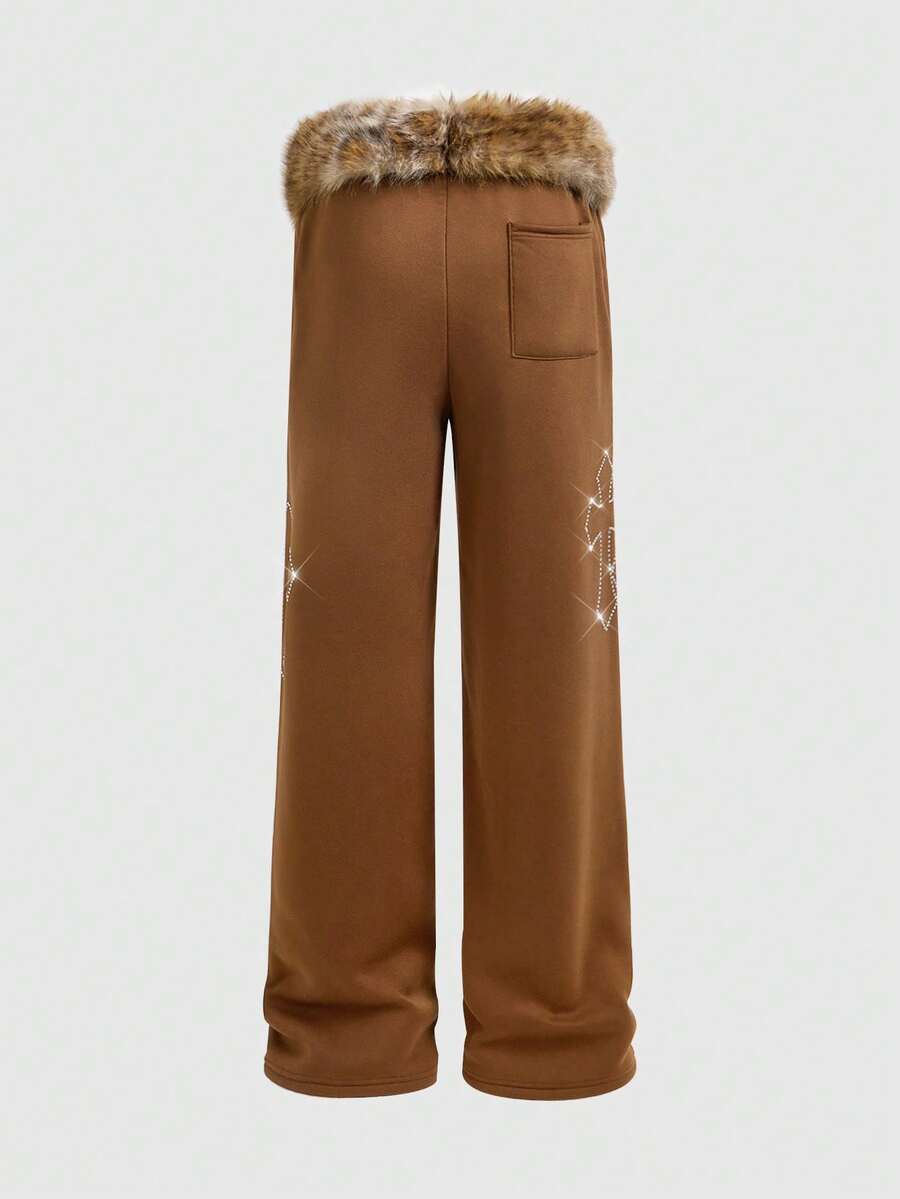 Street Life Men's Curved Blade Fuzzy Waist Tie Wide Leg Casual Sweatpants