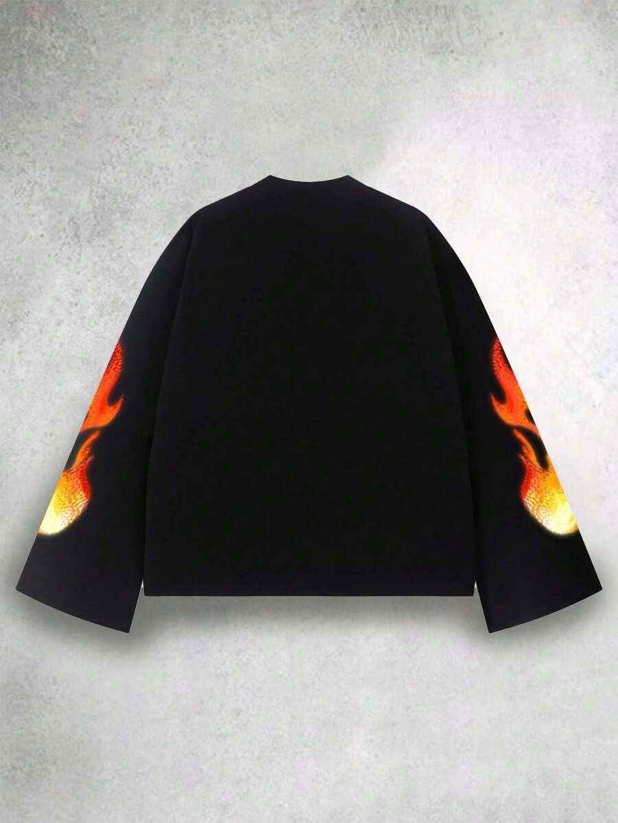 Street Life Men's Digital Print Flame Eye Oversized T-Shirt