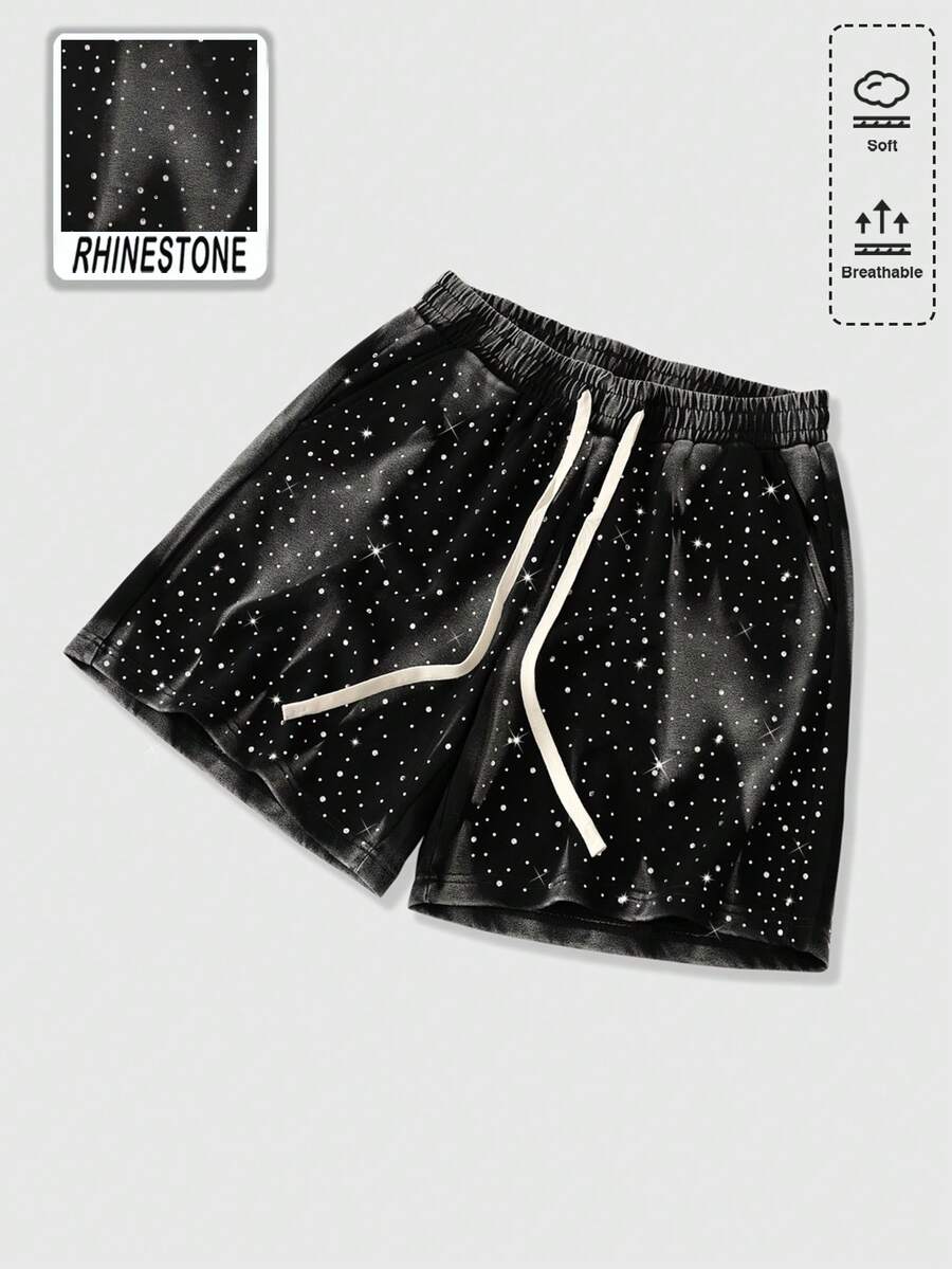 Street Life Men's Distressed Rhinestone Embellished Denim Shorts