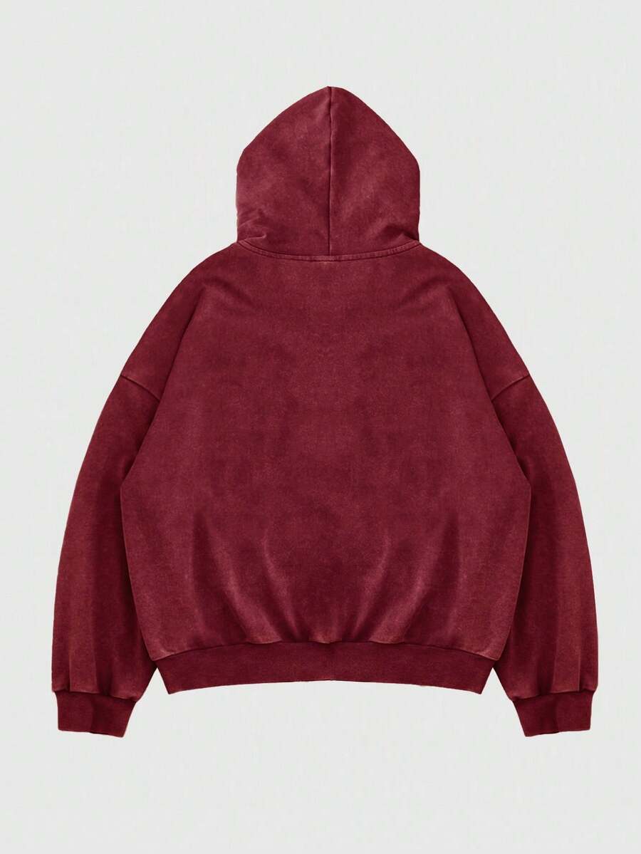 Street Life Men Distressed Vintage Numeral Embroidered Zip-Up Hoodie, Streetwear, Fall