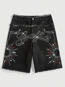 Street Life Men's Double-Layer Waist Sparkling Diamond Denim Shorts