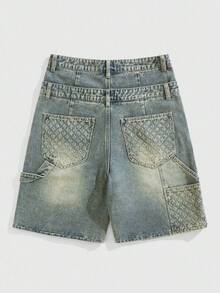 Street Life Men's Double-Layer Waistband Cargo Denim Shorts