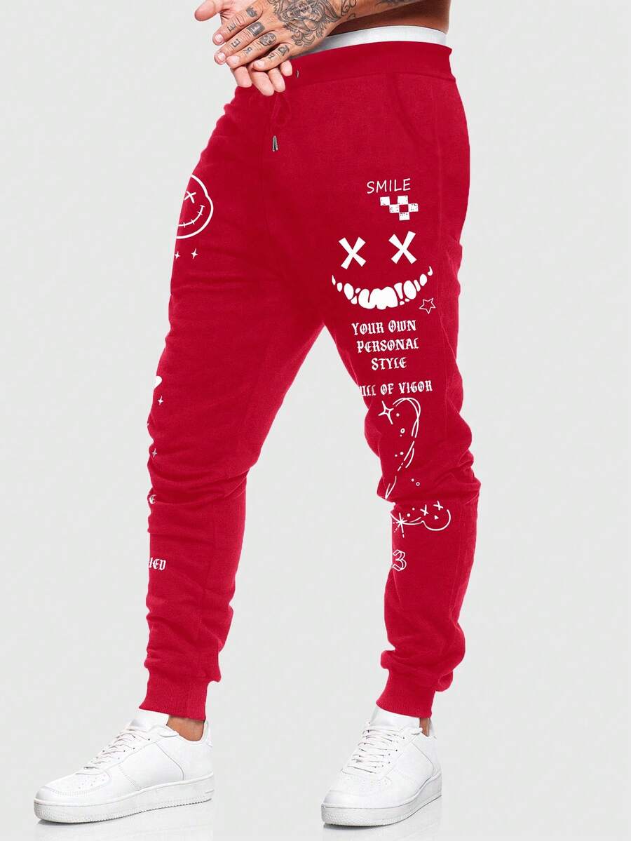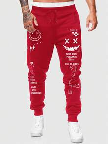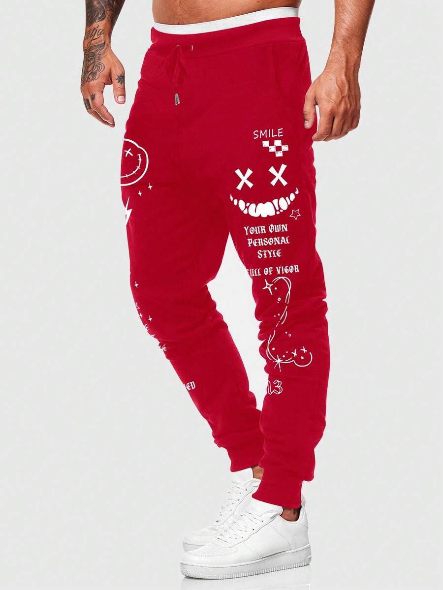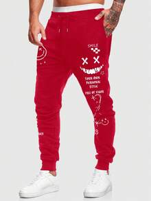 Street Life Men's Drawstring Creative Print Casual Jogger Pants, Fashionable Streetwear