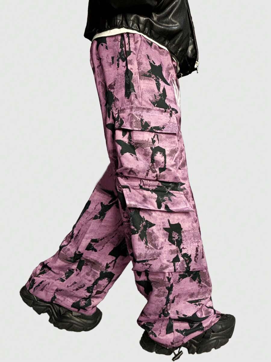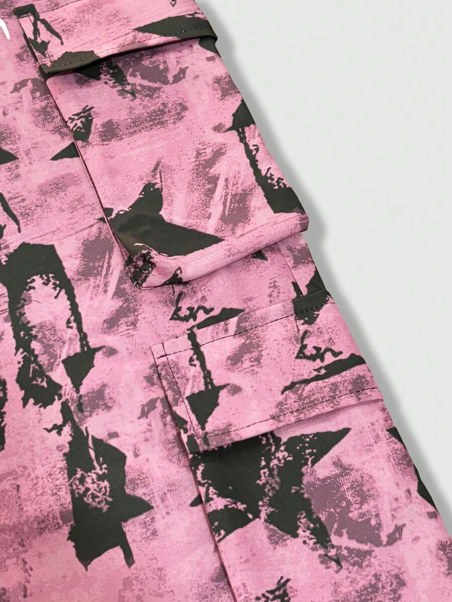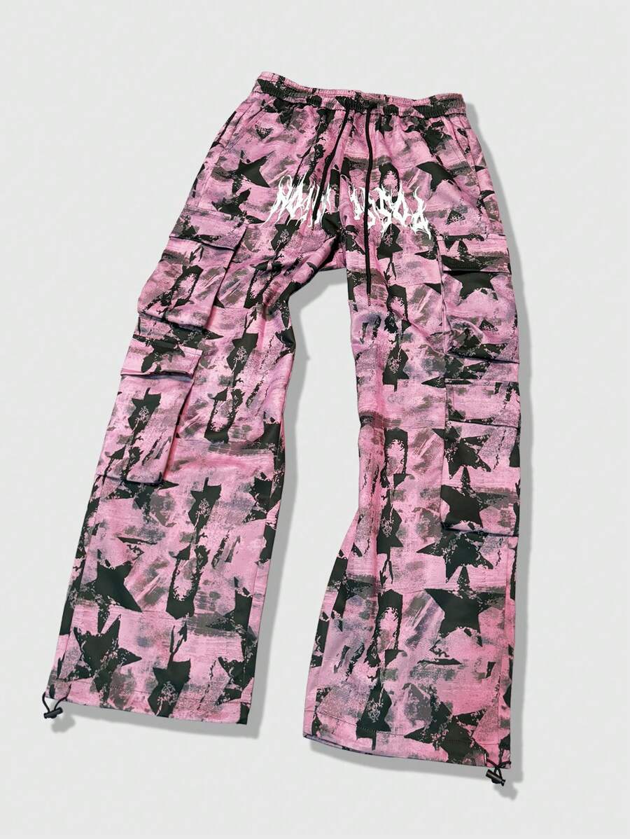 Street Life Men's Drawstring Star Print Pocket Casual Cargo Pants, For Daily Wear, Fall