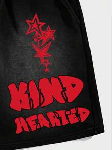 Street Life Men's Drawstring Waist Pocket Star Pentagram Printed Casual Shorts
