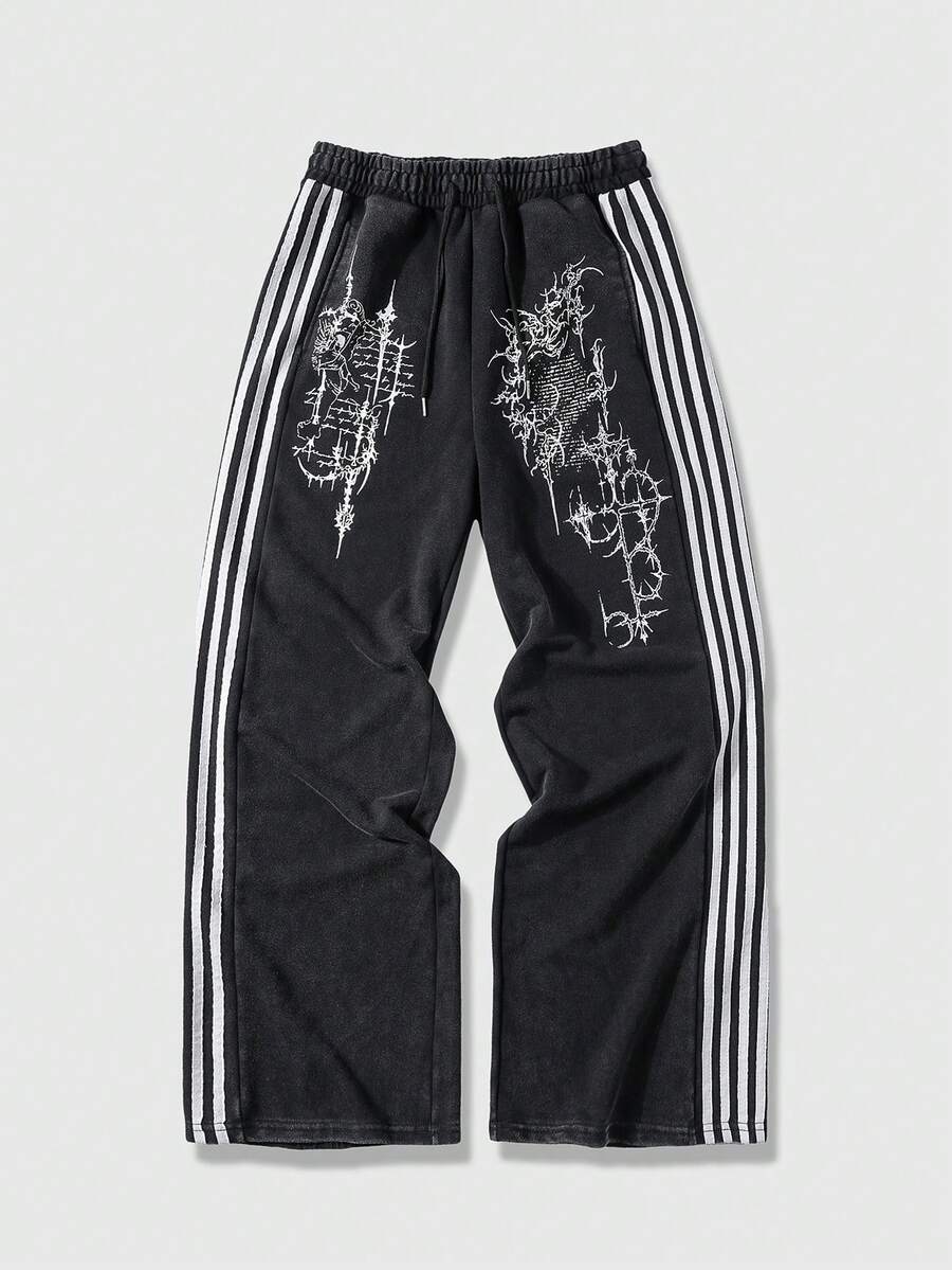 Street Life Men's Elastic Waist Drawstring Gothic Straight Loose Striped Fashion Sweatpants