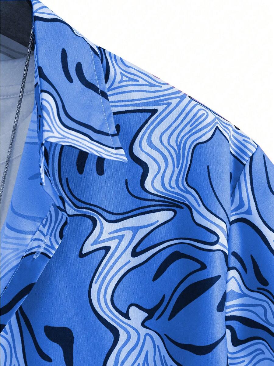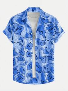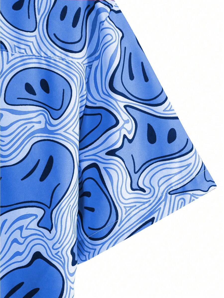 Street Life Men's Expression Print Short Sleeve Shirt, Suitable For Daily Wear In Spring And Summer