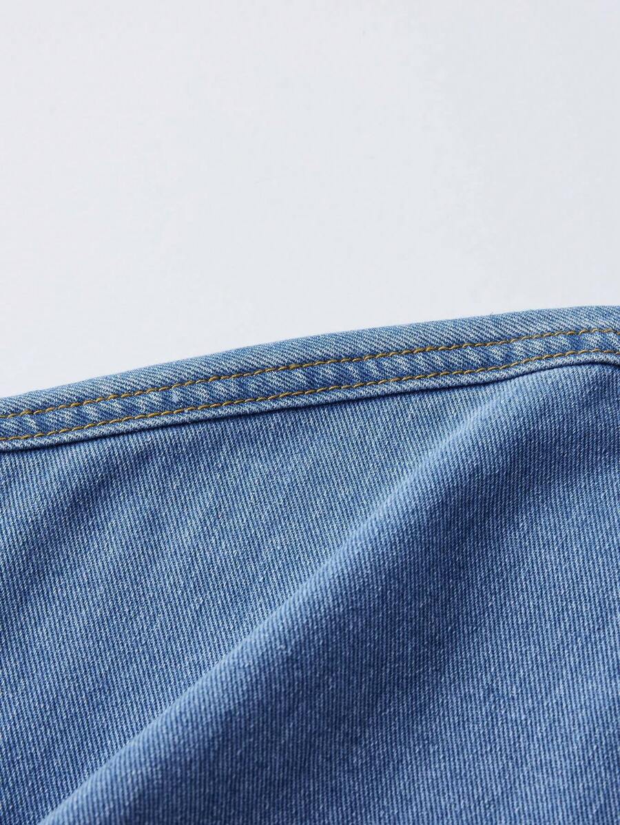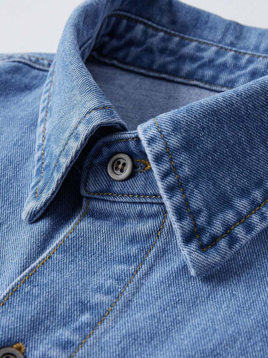 Street Life Men's Fashionable Frayed Design Short Sleeve Denim Shirt
