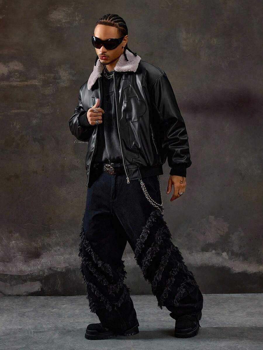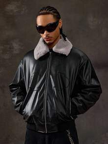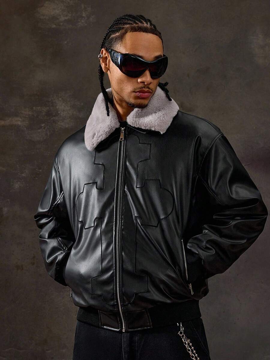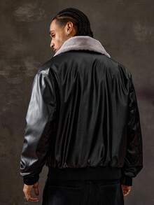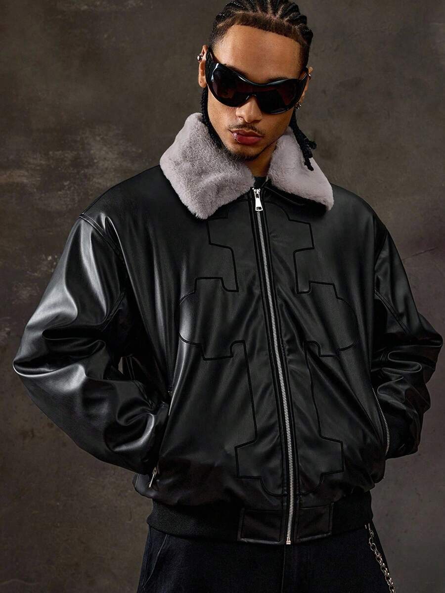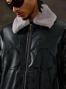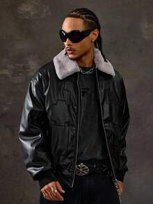 Street Life Men's Fashionable Furry Collar PU Leather Jacket, Autumn/Winter, Grunge