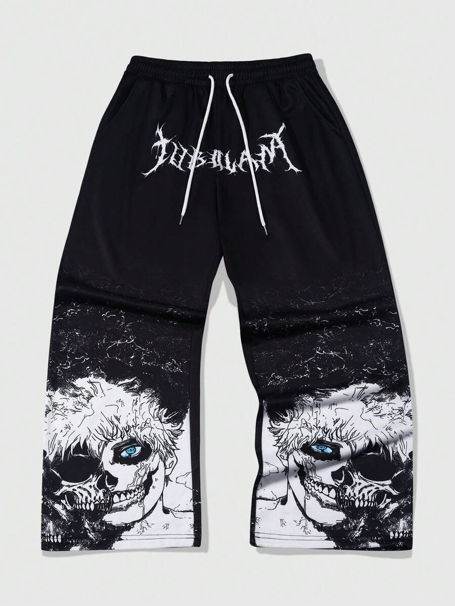 Street Life Men's Fashionable Gothic Cartoon Character Print Straight Leg Pants