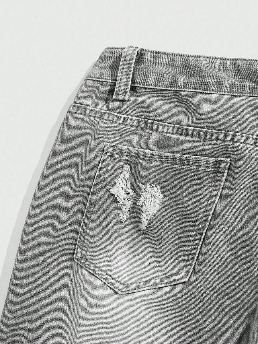 Street Life Men's Fashionable Ripped Rhinestone Denim Shorts, Summer