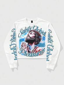 Street Life Men Figure & Letter Saint Graphic Pullover Sweatshirt, Fall