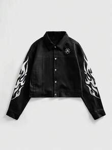 Street Life Men's Flame Pattern Long Sleeve Single-Breasted Casual Loose Jacket