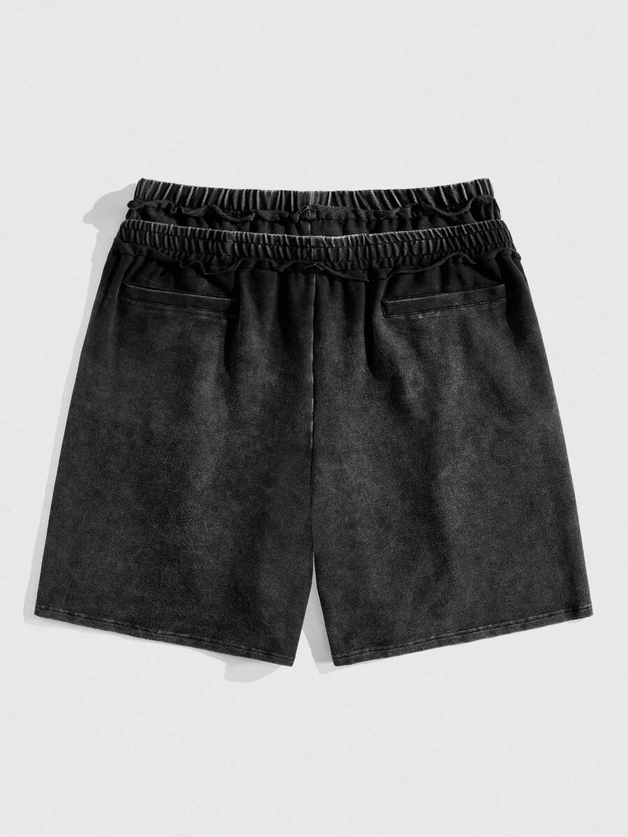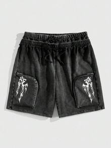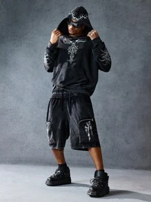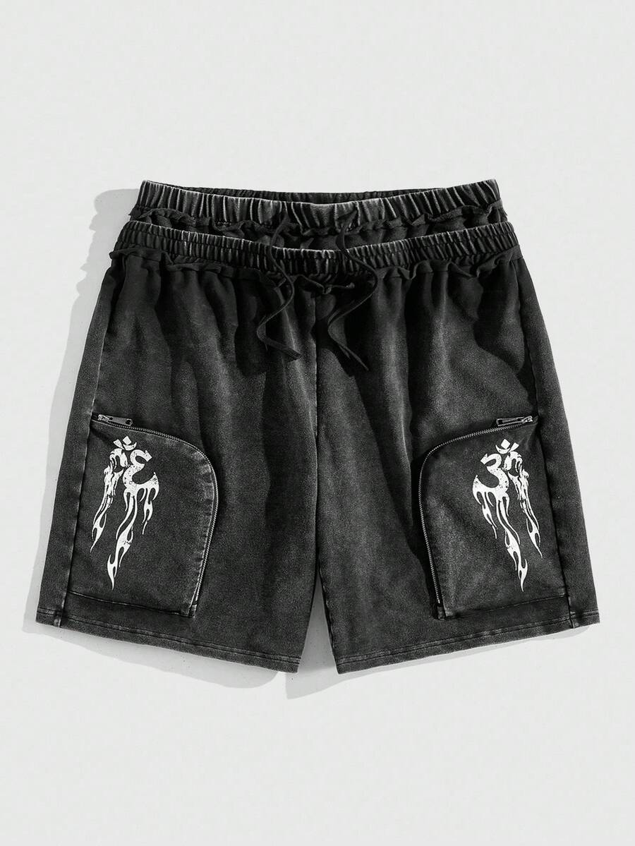 Street Life Men's Flame Print Casual Loose Dual Waistband Distressed Wash Shorts
