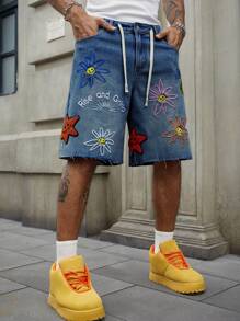 Street Life Men's Floral Embroidered Pocket Loose Bermuda Denim Shorts