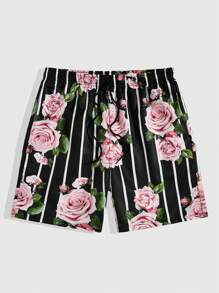 Street Life Men's Floral Print Casual Beach Shorts, Suitable For Summer