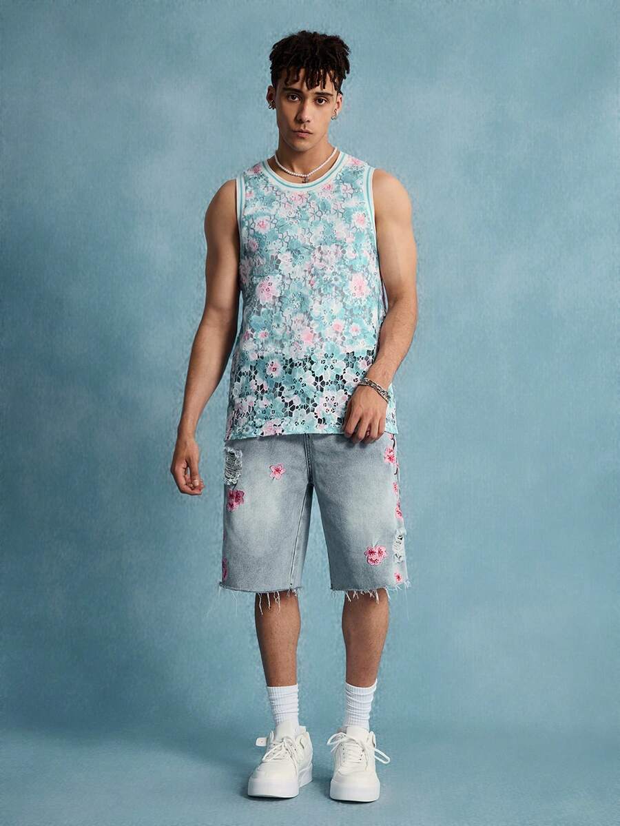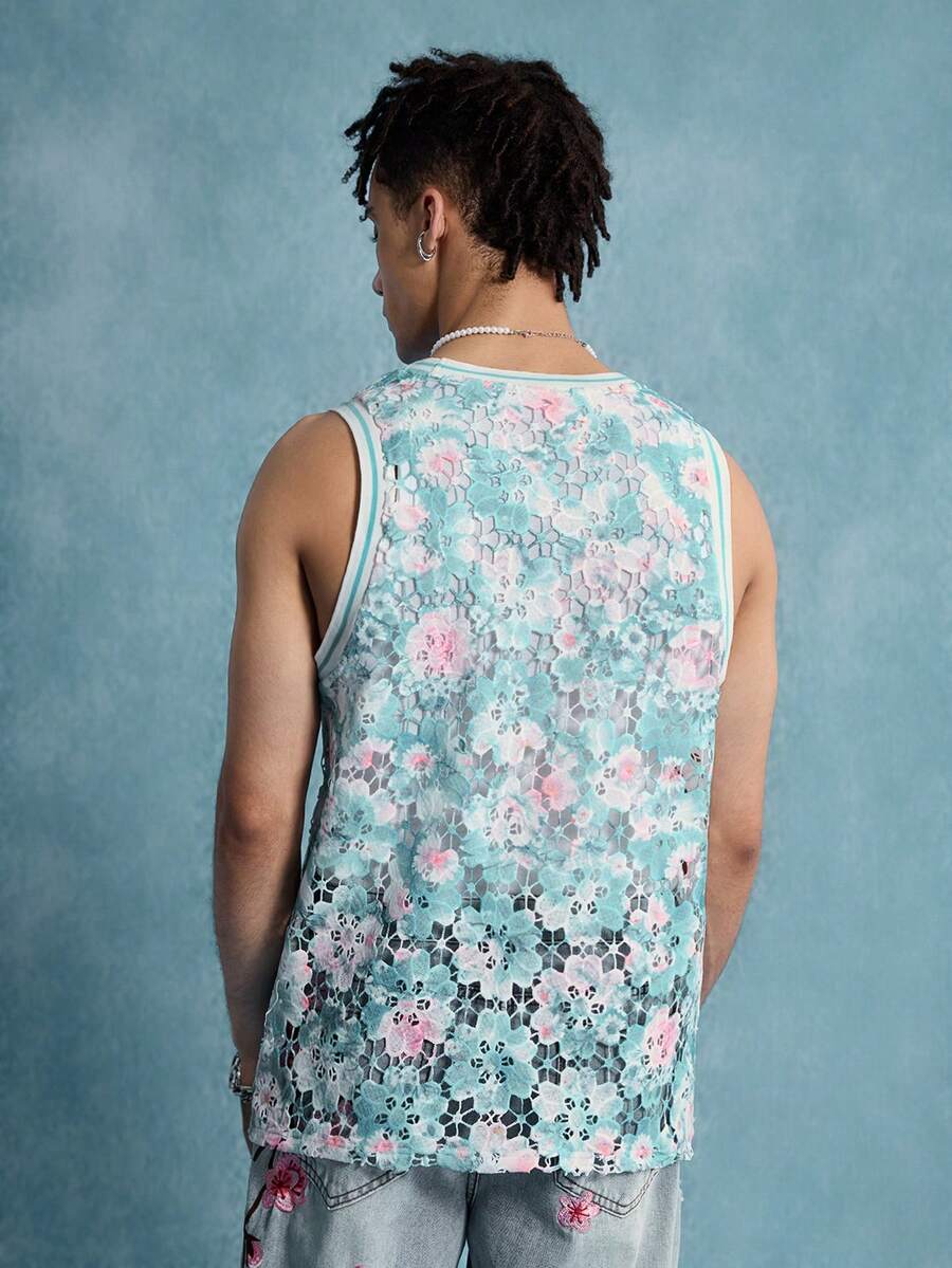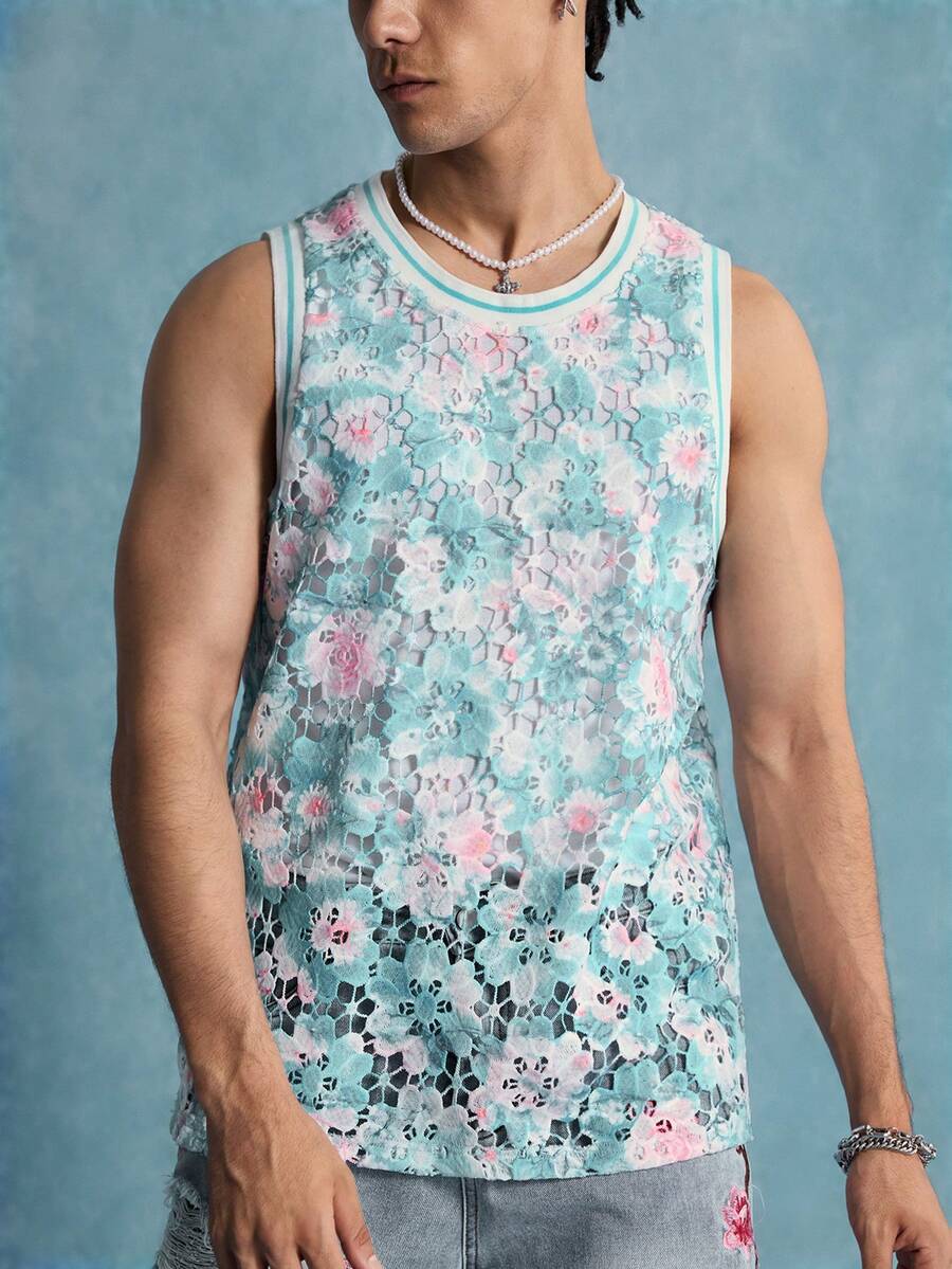 Street Life Men's Floral Print Round Neck Summer Vacation Casual Tank Top