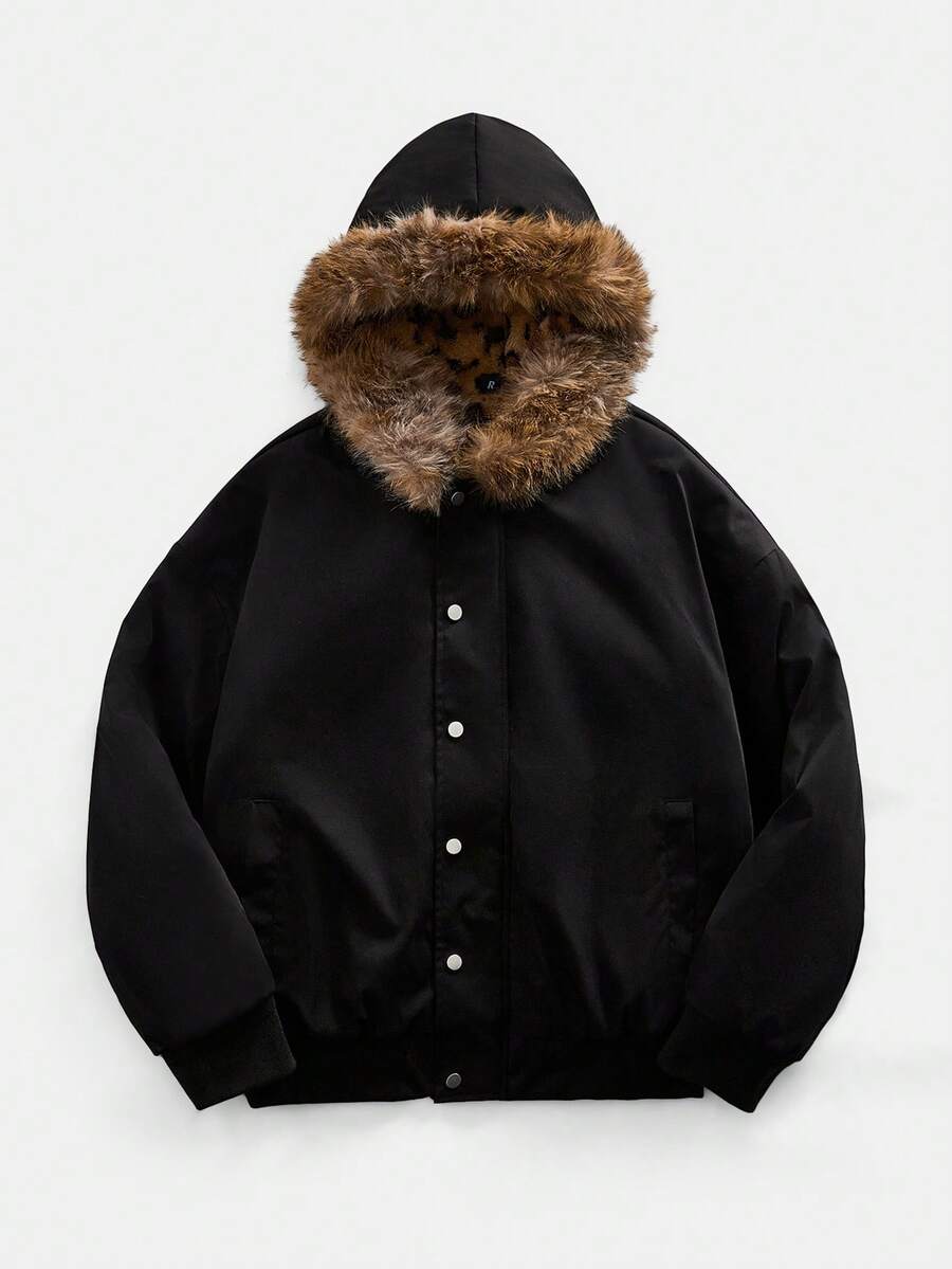 Street Life Men's Fluffy Collar Hooded Padded Coat, Loose Fit