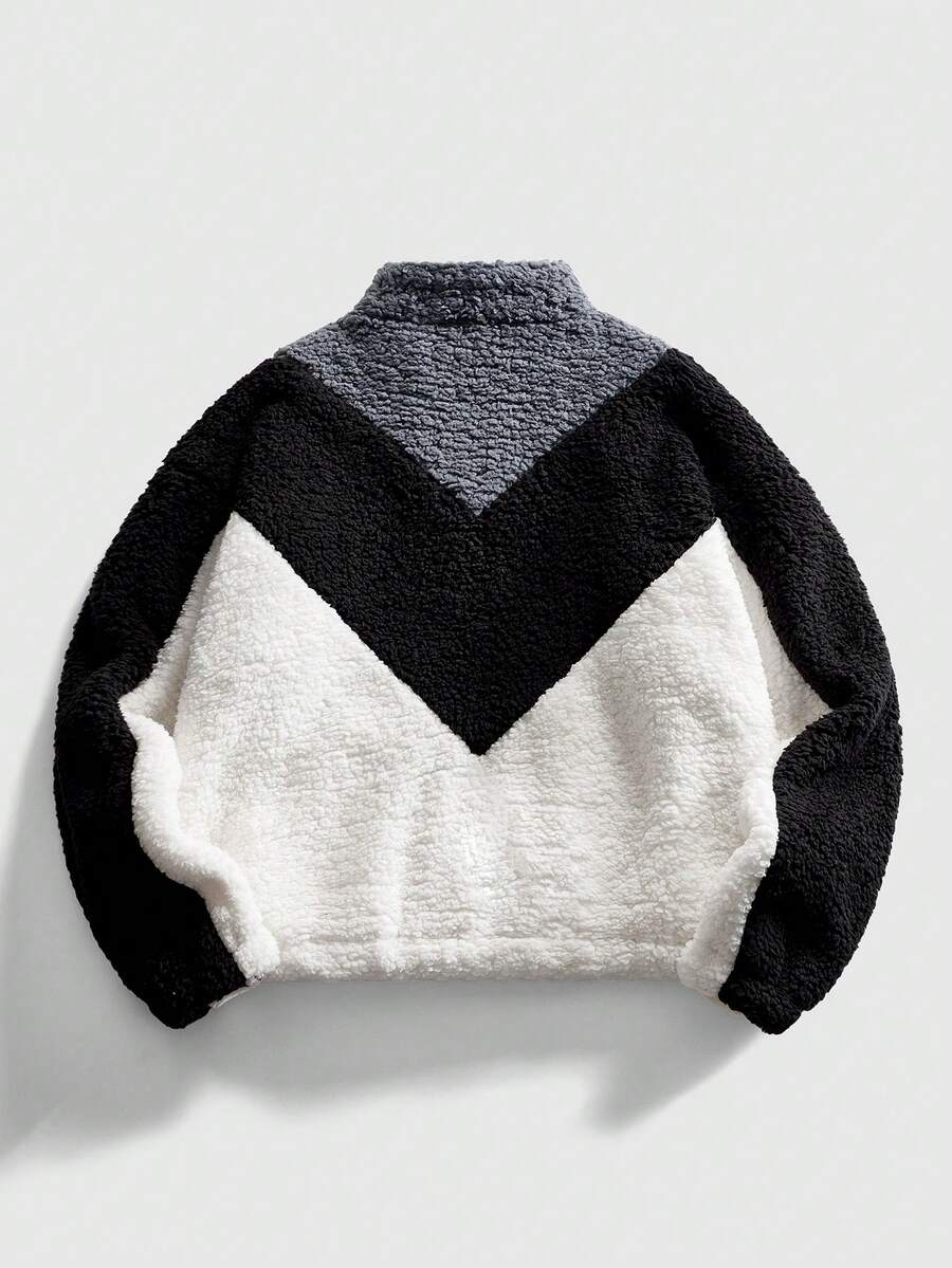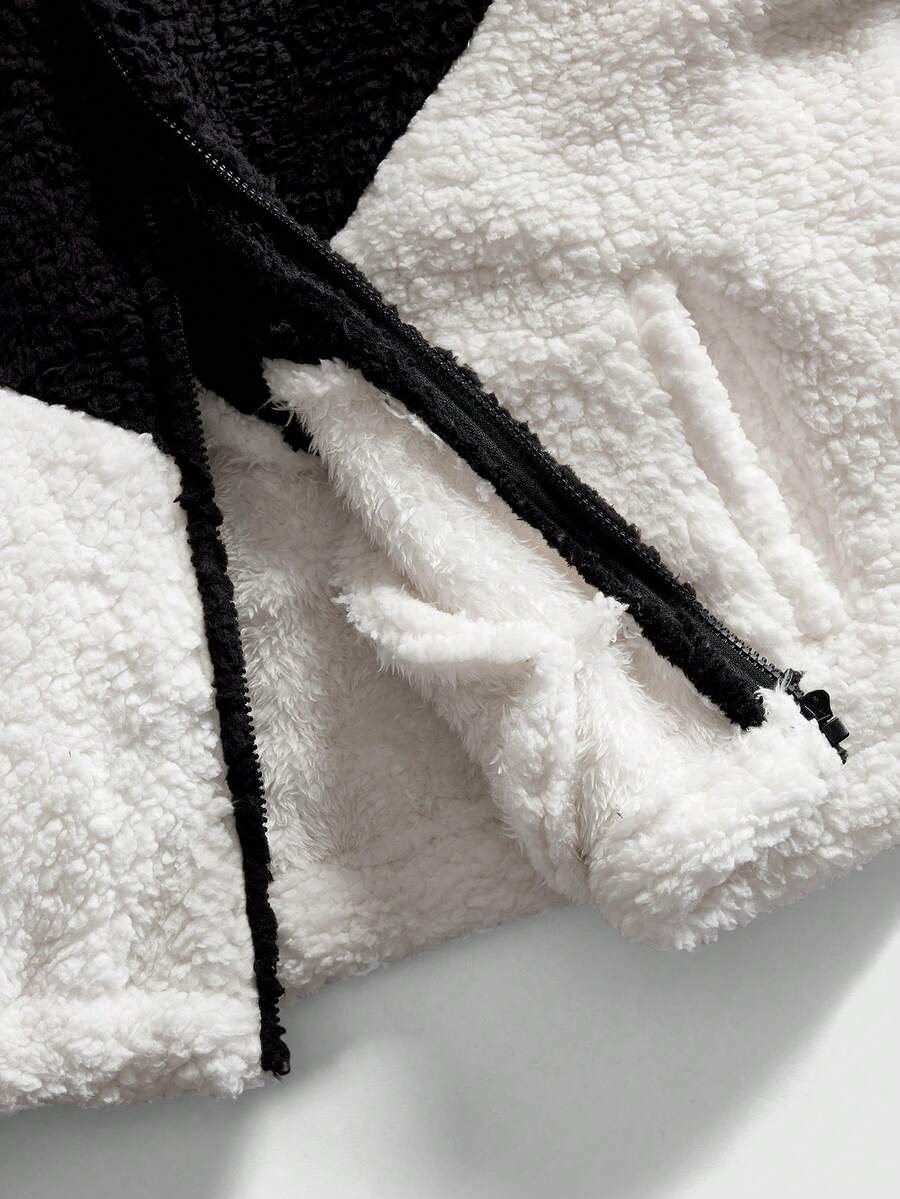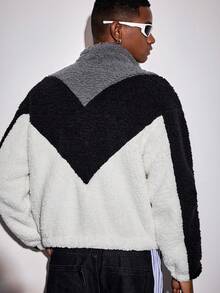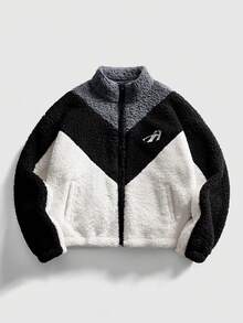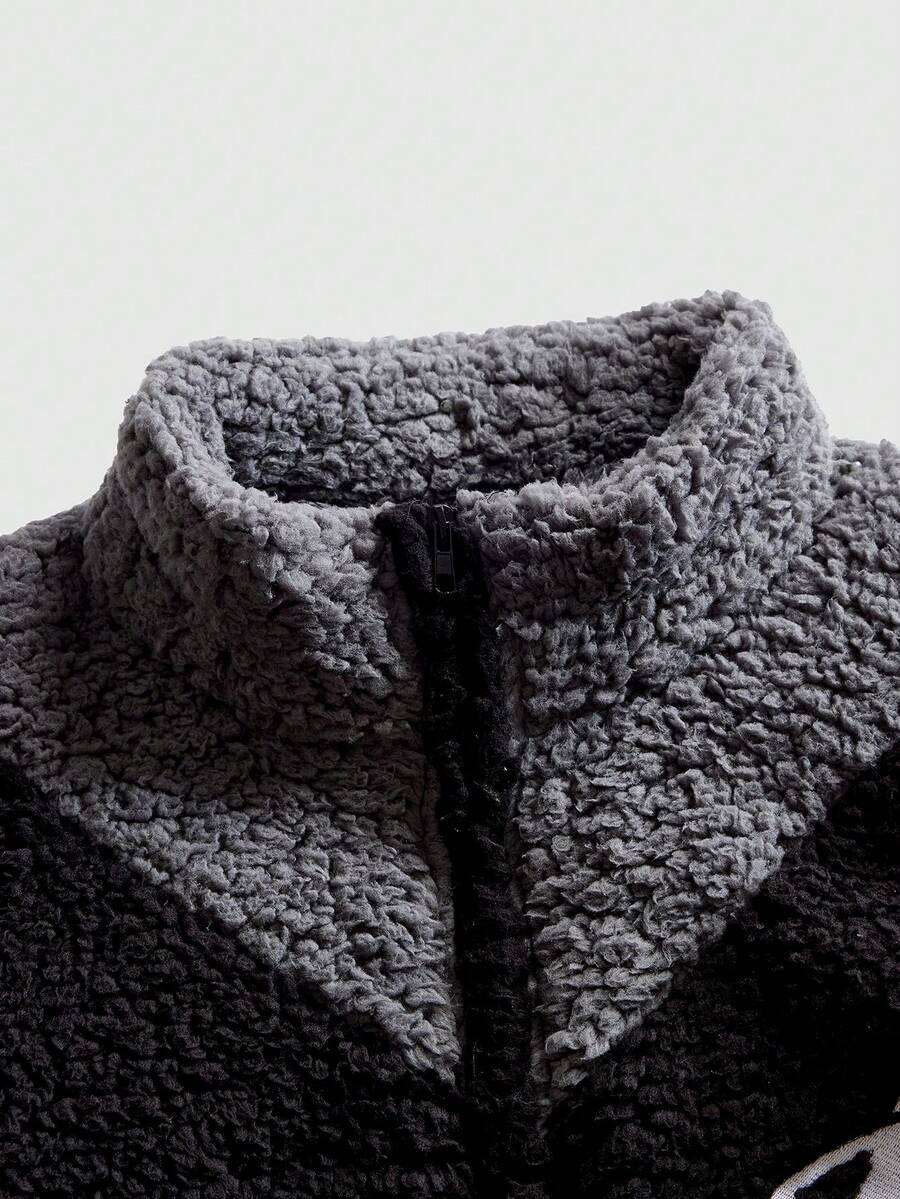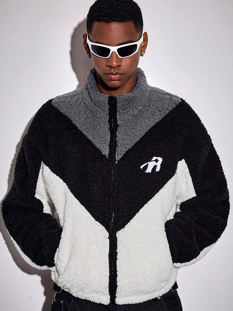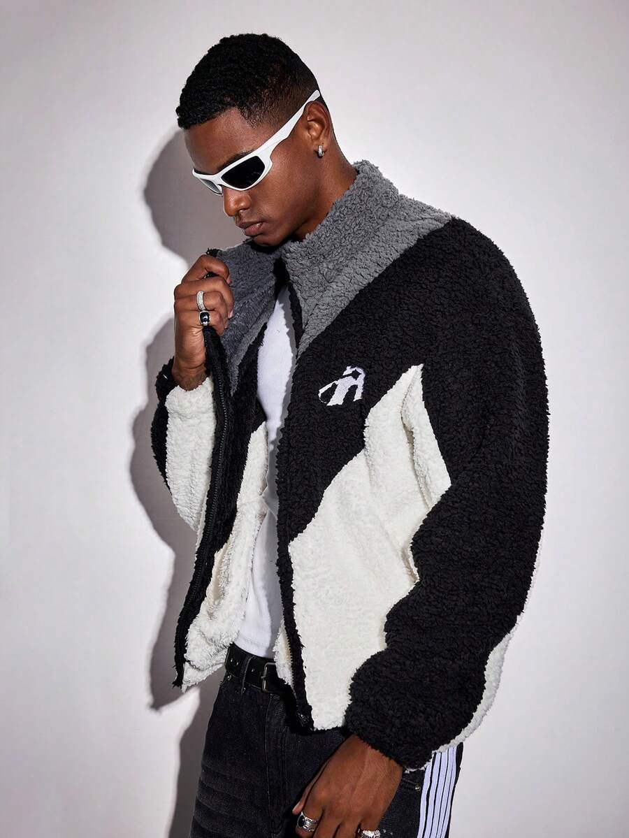 Street Life Men's Fluffy Fabric Patchwork Loose Fit Jacket