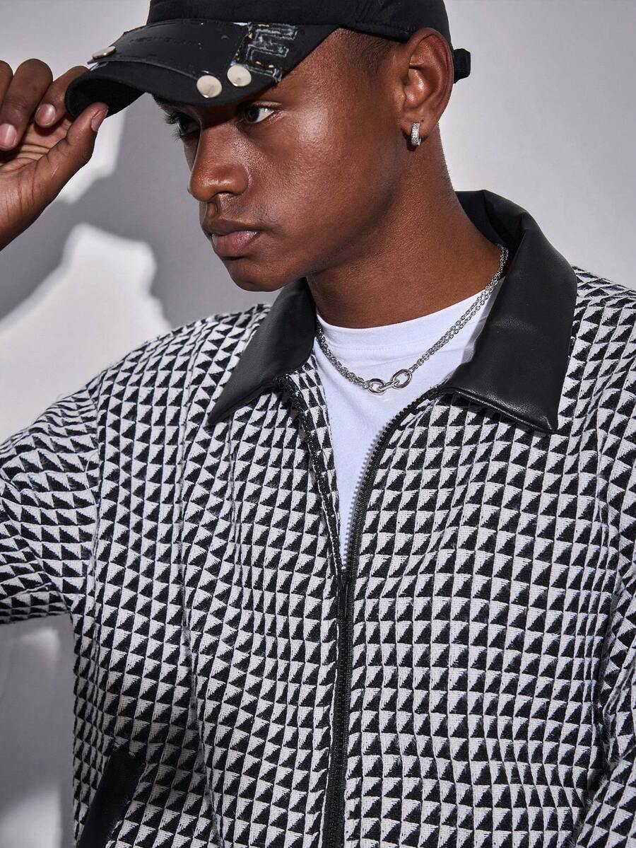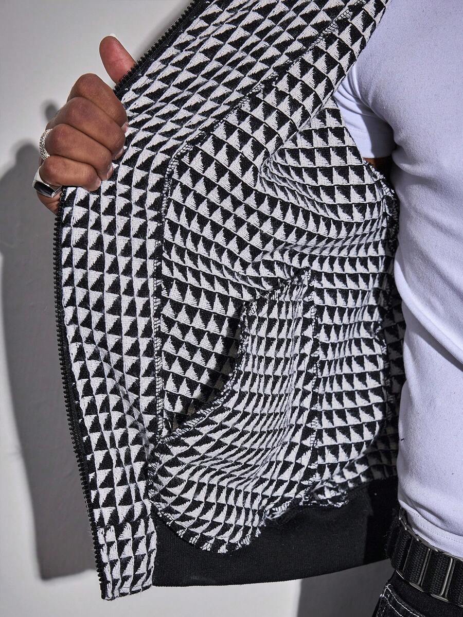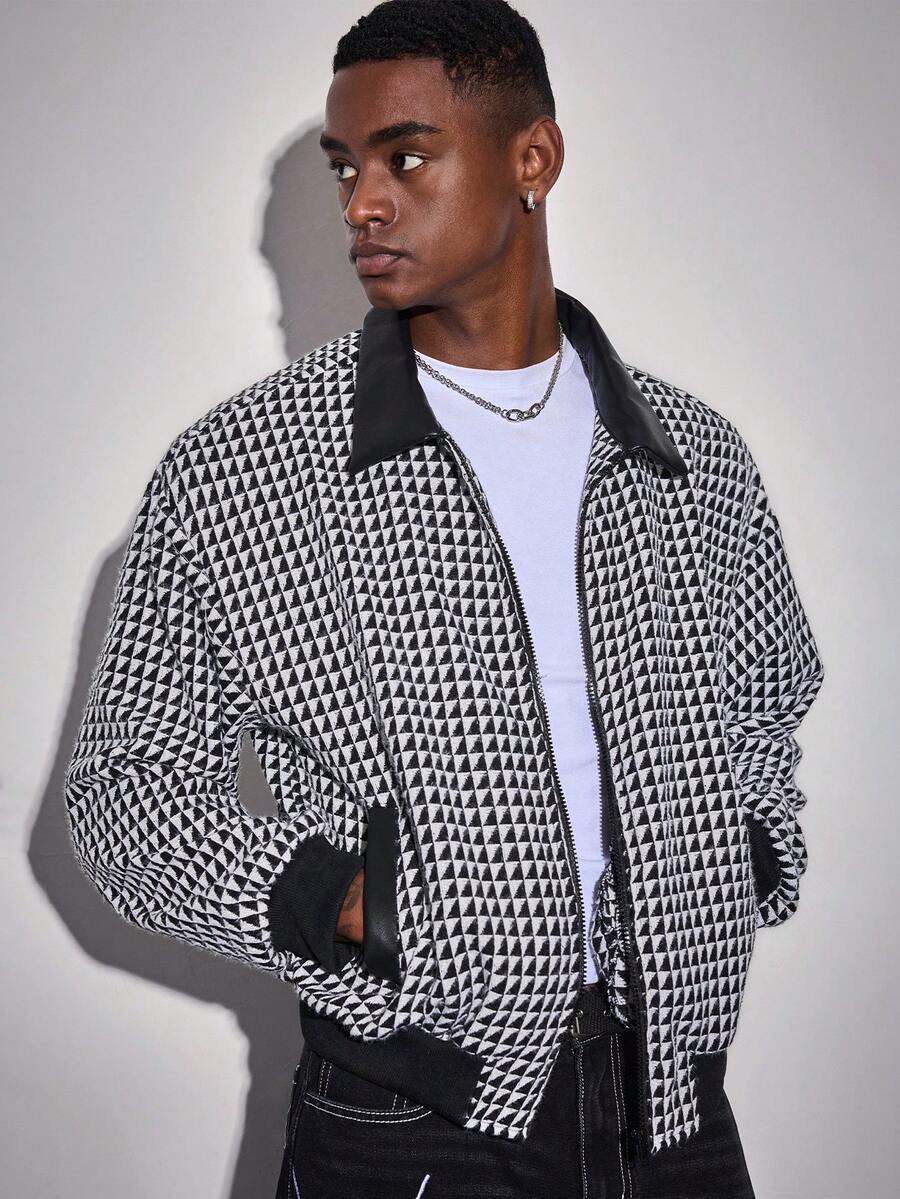 Street Life Men's Geometric Print Drop Shoulder Zip Front Casual Jacket
