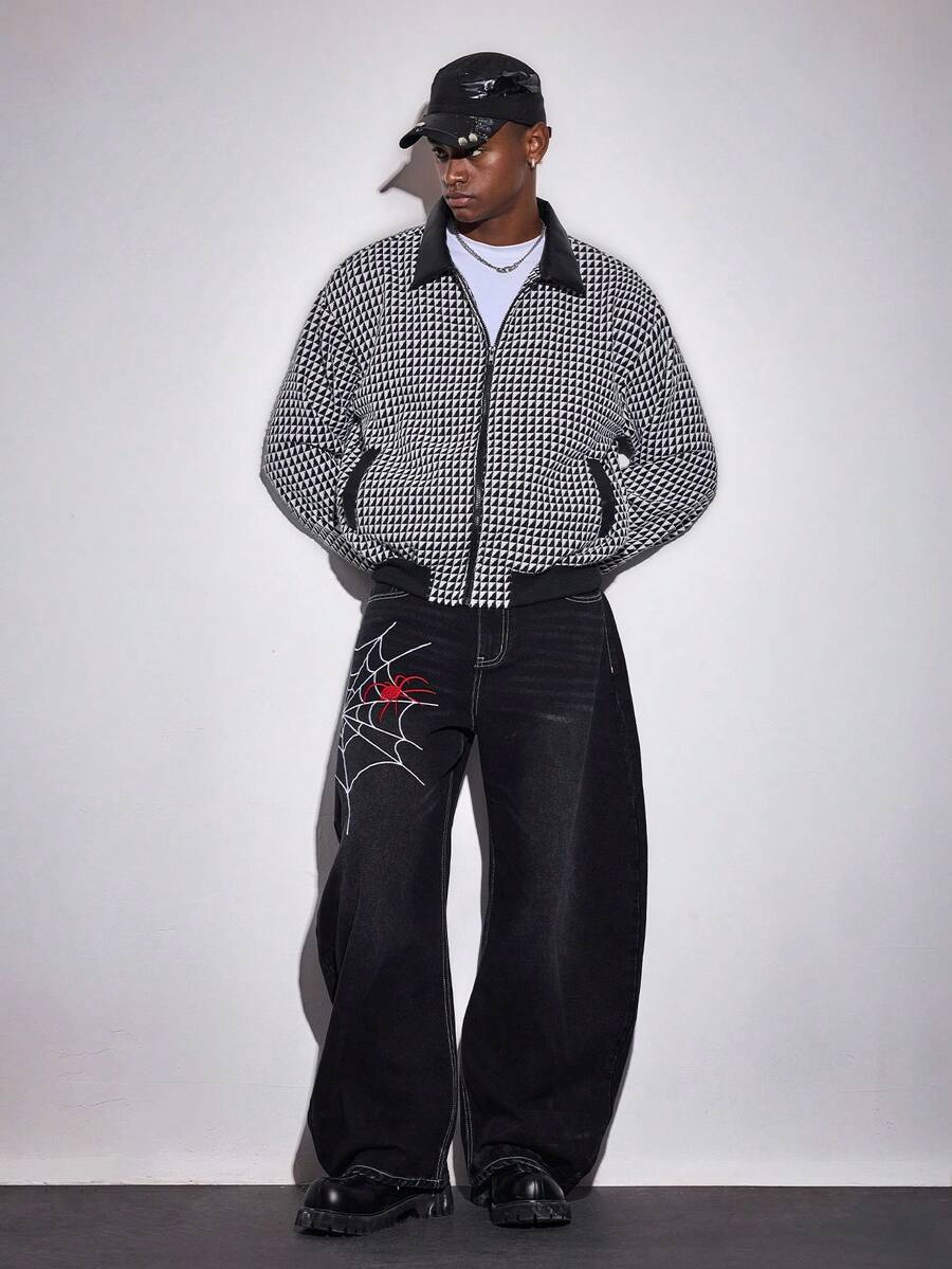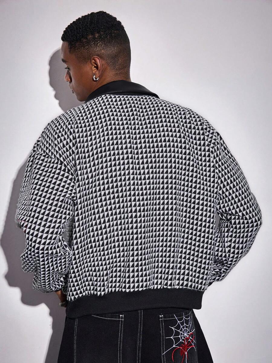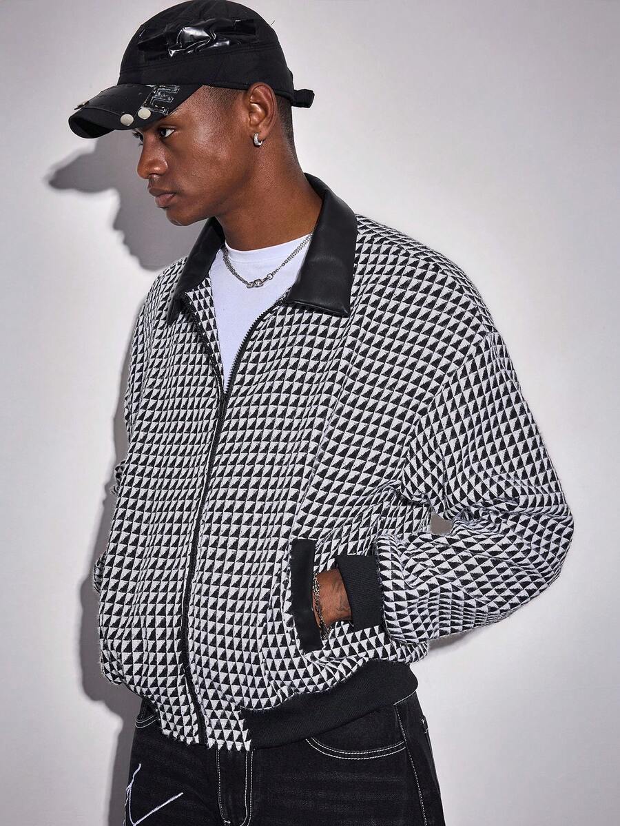 Street Life Men's Geometric Print Drop Shoulder Zip Front Casual Jacket