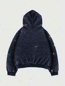 Street Life Men's Heavyweight Full Diamond Loose Short Hoodie, Streetwear , Fall