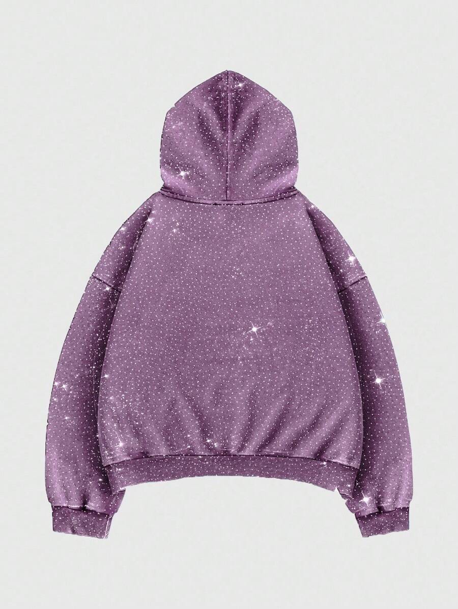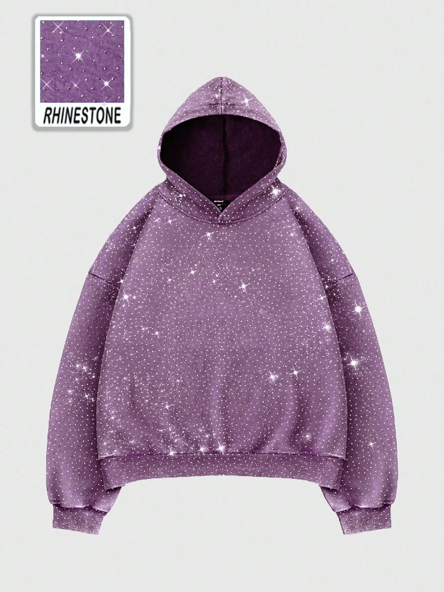 Street Life Men's Heavyweight Full Diamond Loose Short Hoodie, Streetwear , Fall