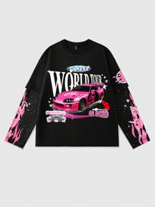 Street Life Men's Heavyweight Long Sleeve T-Shirt With 2 In 1 Design, Streetwear