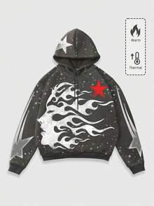 Street Life Men's Hooded Drawstring Long Sleeve Casual Creative Portrait Graphic Sweatshirt , Fall Winter