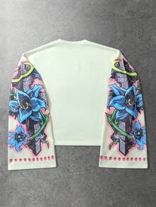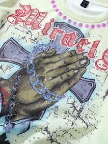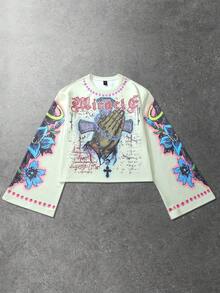Street Life Men's Khaki Short Crew Neck Sweatshirt With Cross Pattern, Autumn/Winter