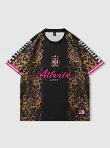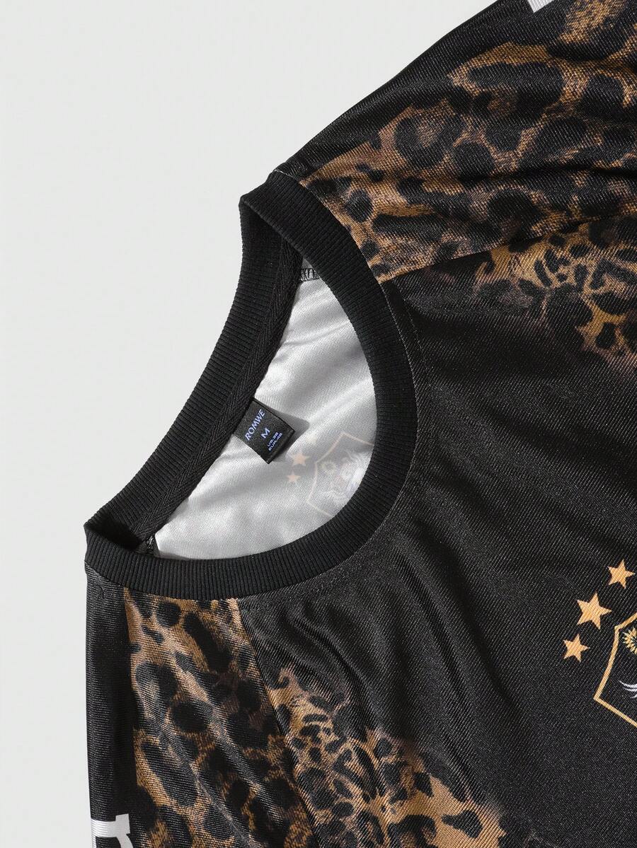 Street Life Men's Leopard Print & Letter Graphic Short Sleeve T-Shirt, Sporty Style For Summer