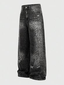 Street Life Men's Leopard Print Pocket Ripped Loose Fit Casual Jeans