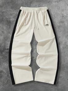 Street Life Men's Letter Print Contrast Color Drawstring Waist Loose Fit Casual Sweatpants, Fall/Winter