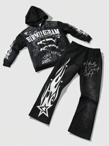 Street Life Men's Letter Print Zip-Front Hoodie And Pants Set