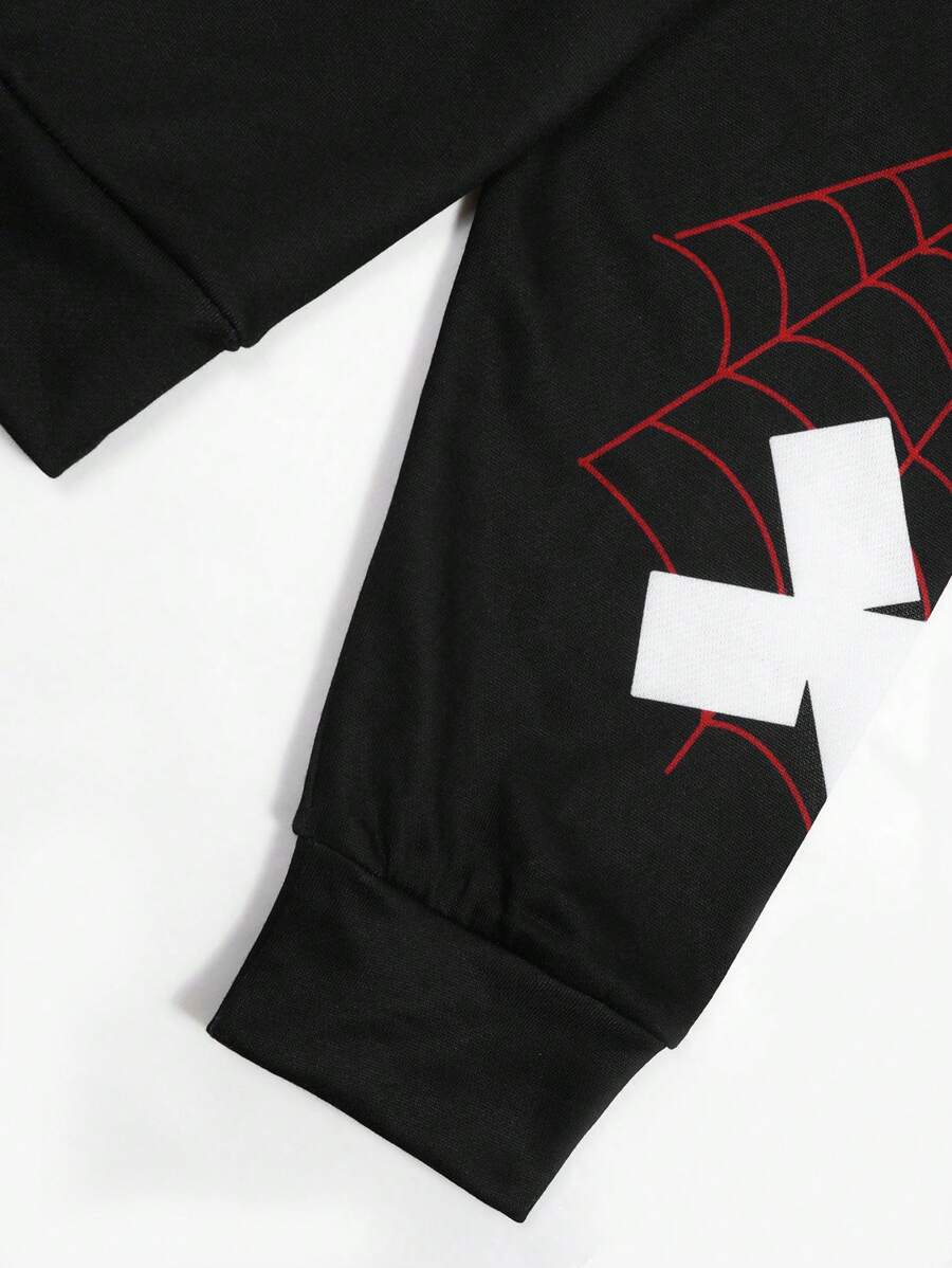 Street Life Men's Long Sleeve Figure Print Hooded Sweatshirt And Loose Straight Pants Set Tracksuit
