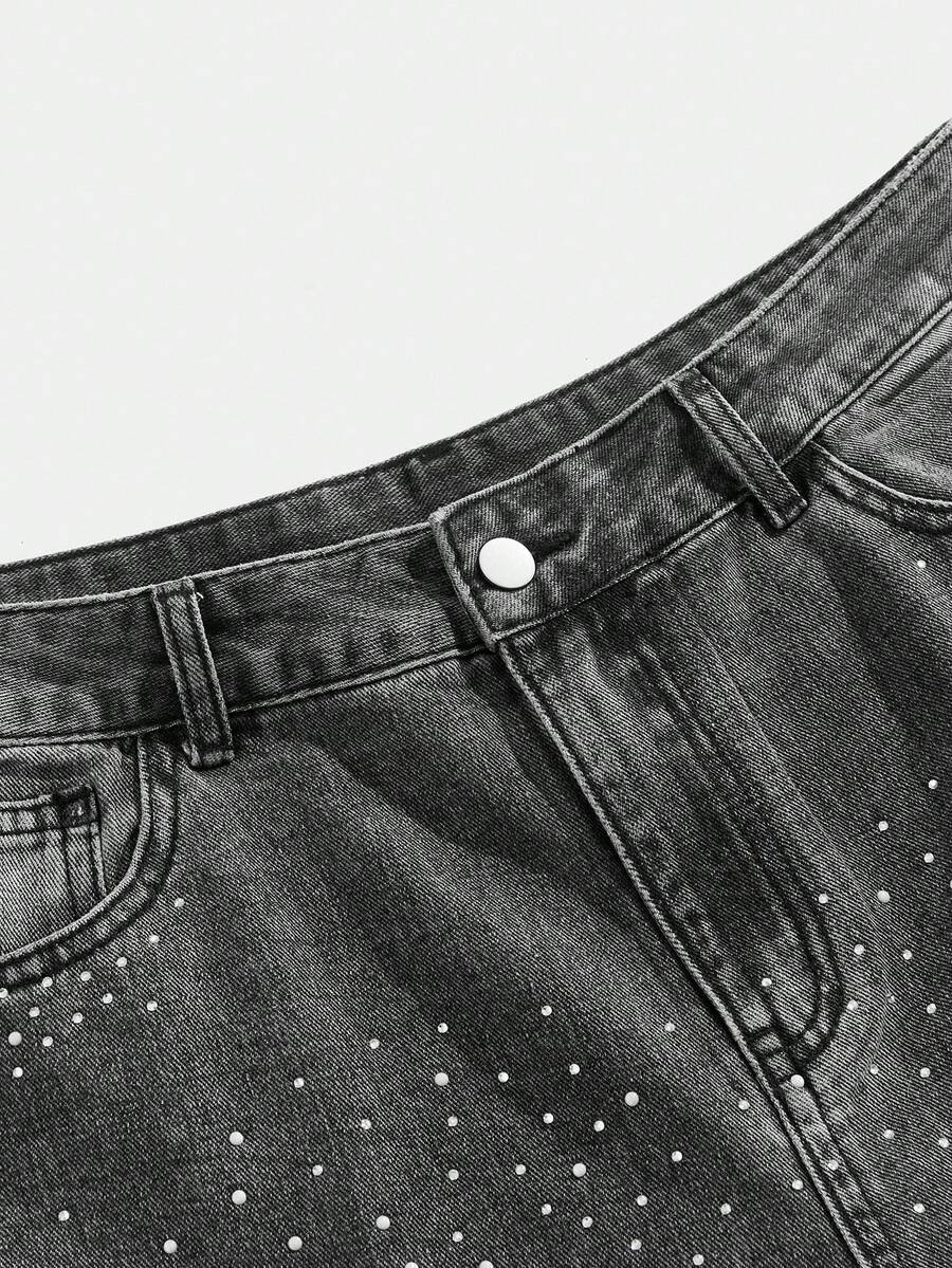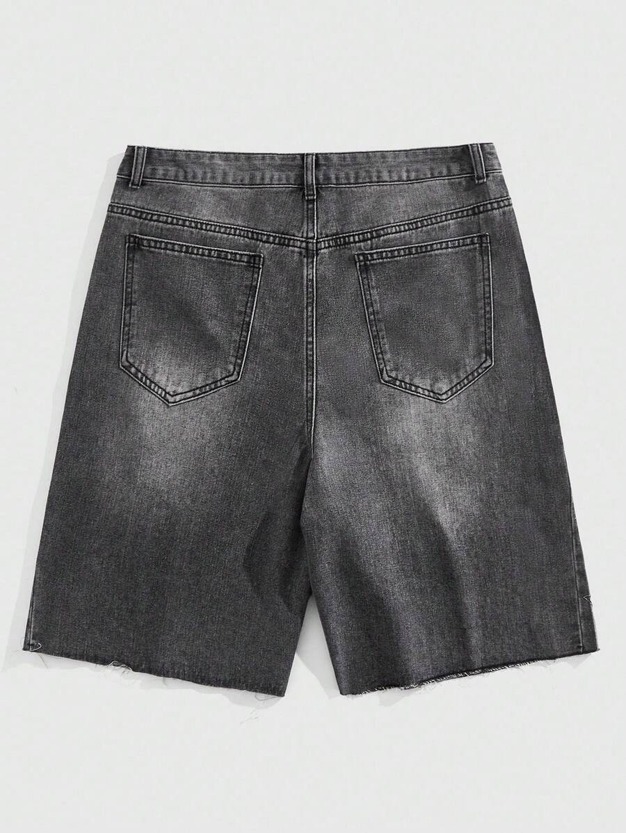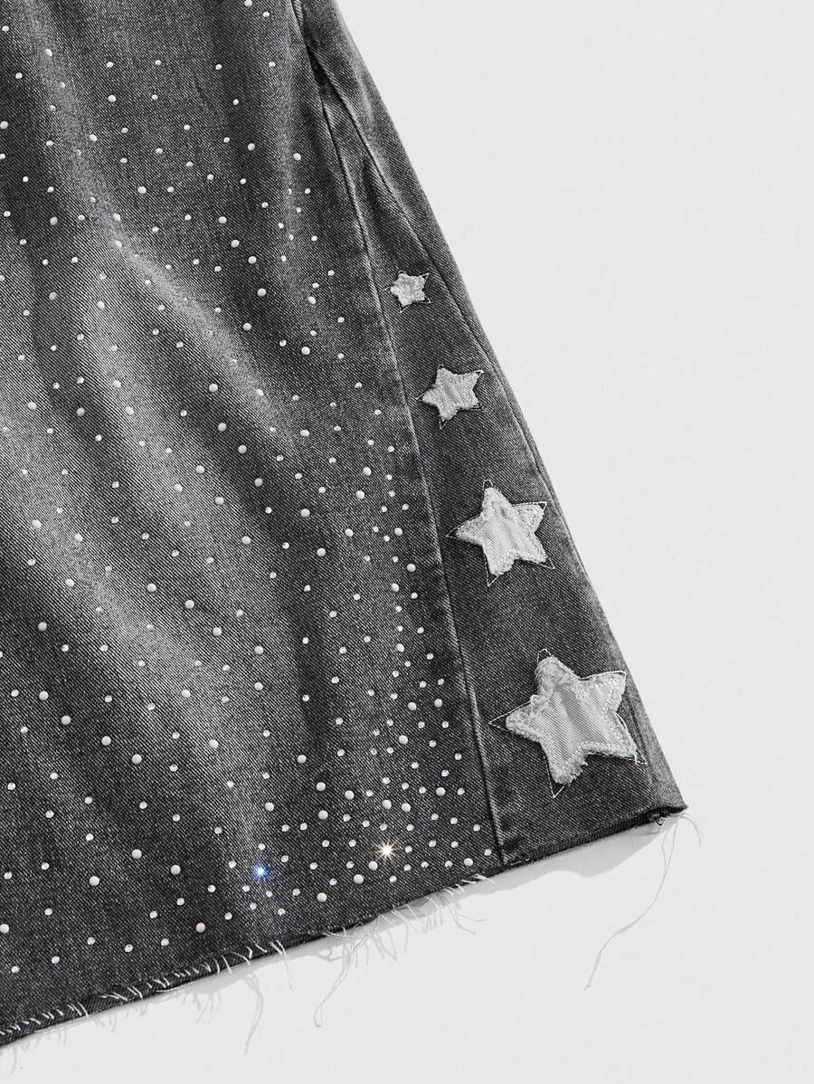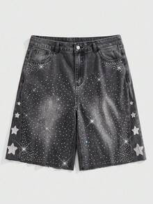 Street Life Men's Loose Denim Shorts With Sparkling Diamond Star Embroidered Patch