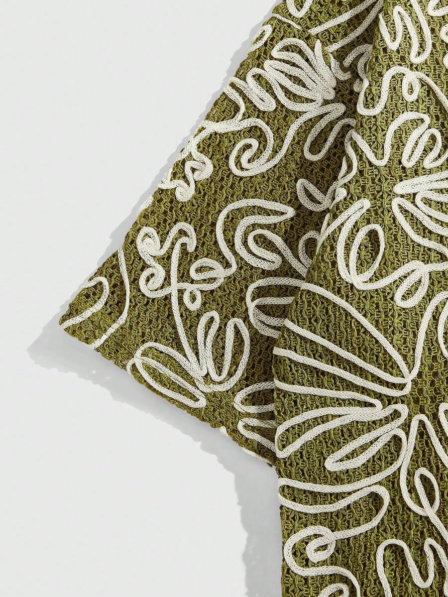 Street Life Men's Loose Drop Shoulder Hollow-Out Knit Casual Shirt,Vacation Shirt