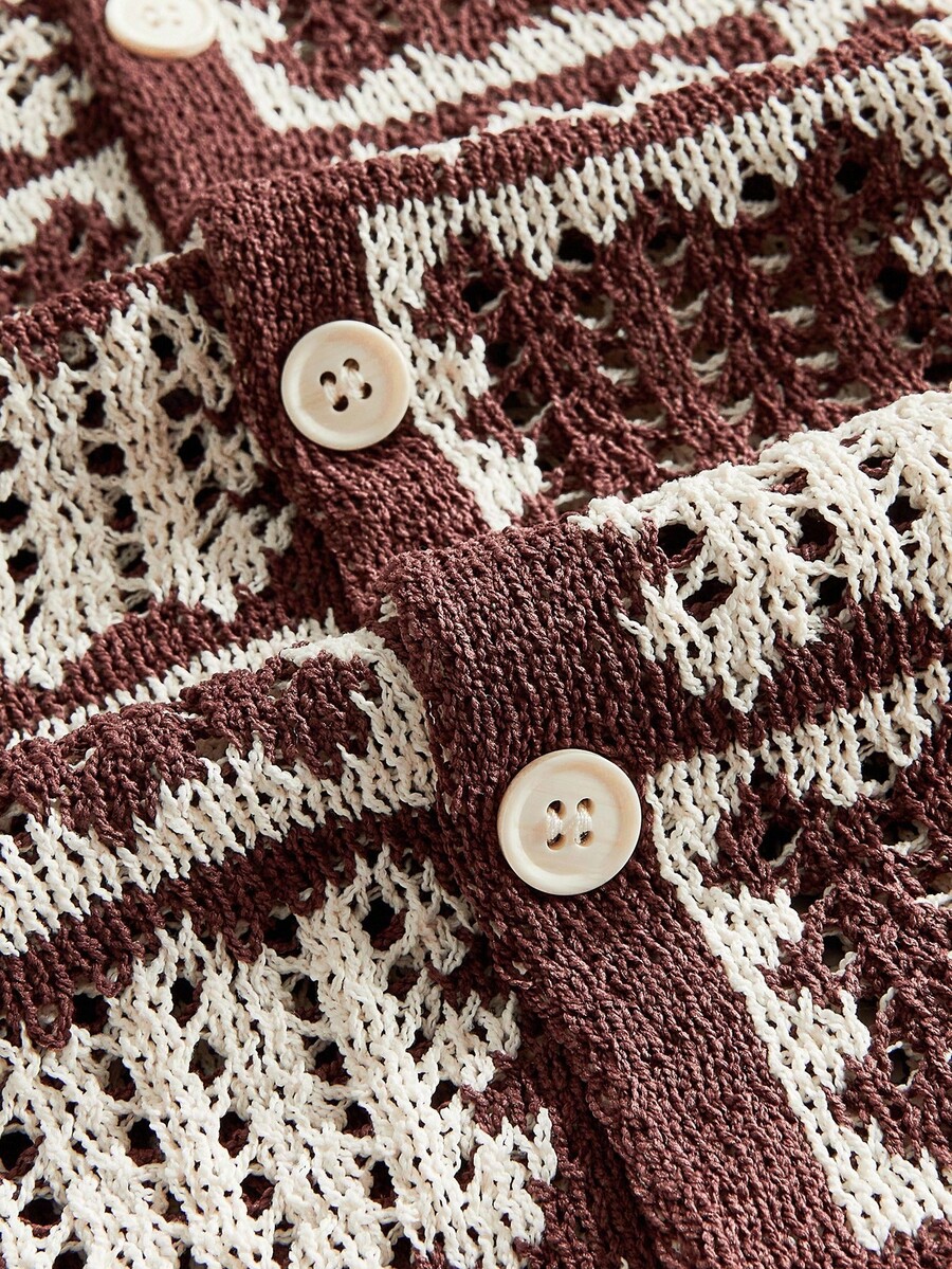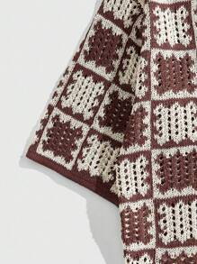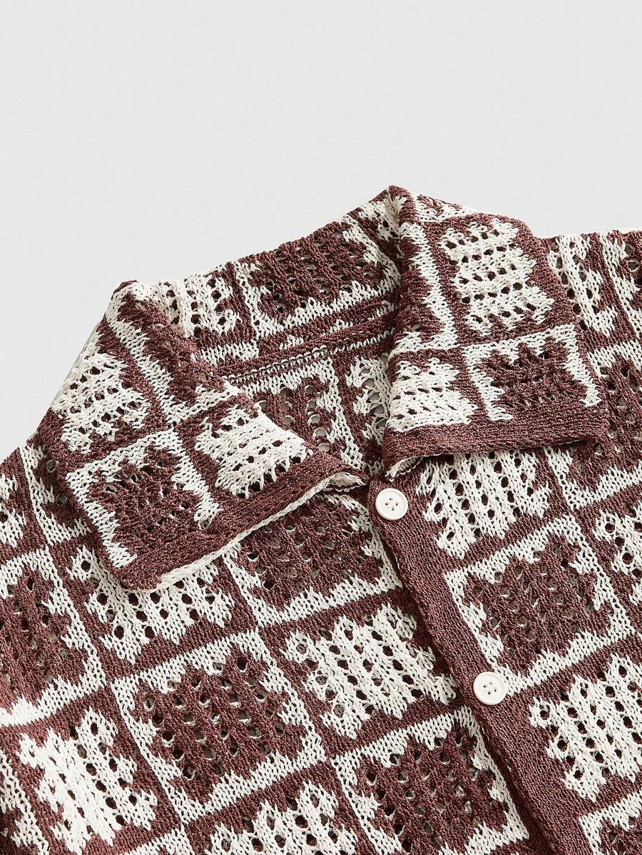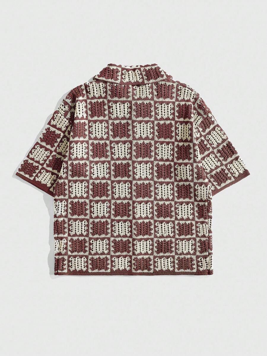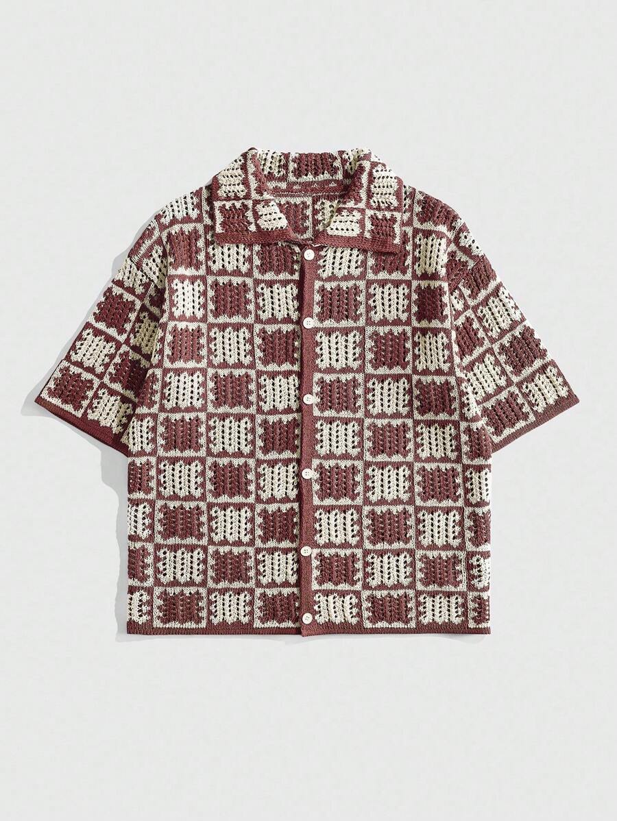 Street Life Men's Loose Dropped Shoulder Hollow Out Knit Shirt, Vacation Shirt