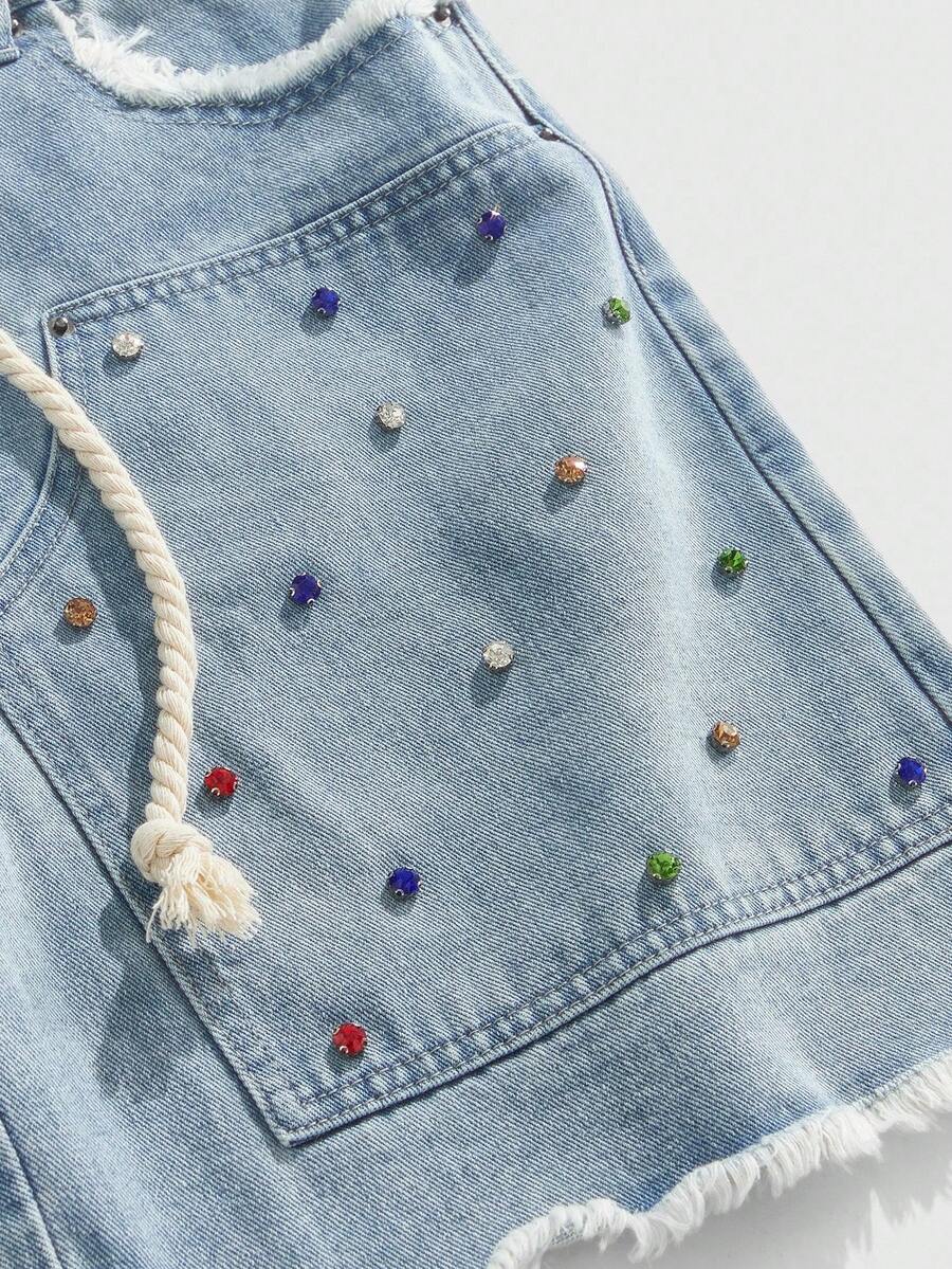 Street Life Men's Loose Fit Double Layer Waist Diamond Embellished Denim Shorts