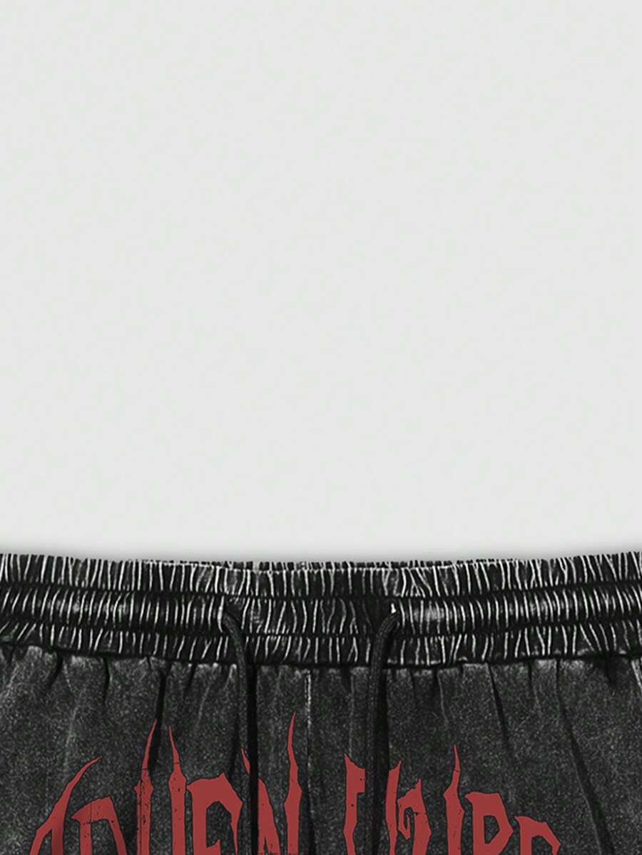 Street Life Men's Loose-Fit Letter & Character Printed Snow Wash Drawstring Shorts