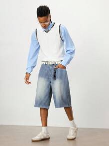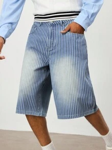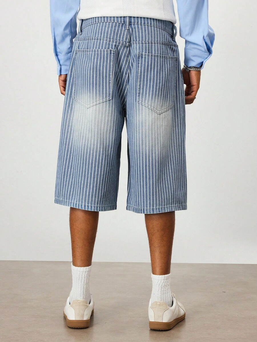 Street Life Men's Loose Fit Pocketed Casual Striped 7/8 Length Jeans, Summer