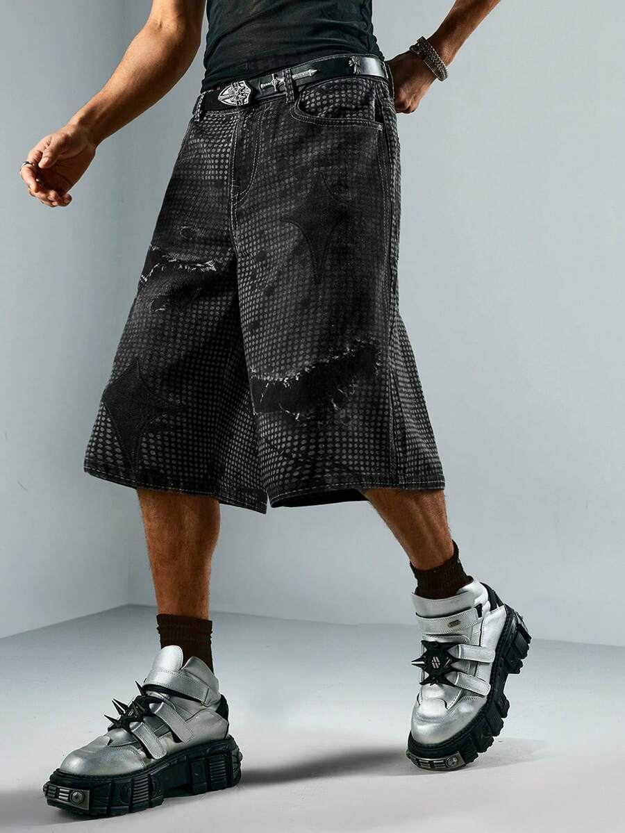 Street Life Men's Loose Fit Pocketed Wide Leg 5-Inch Denim Shorts