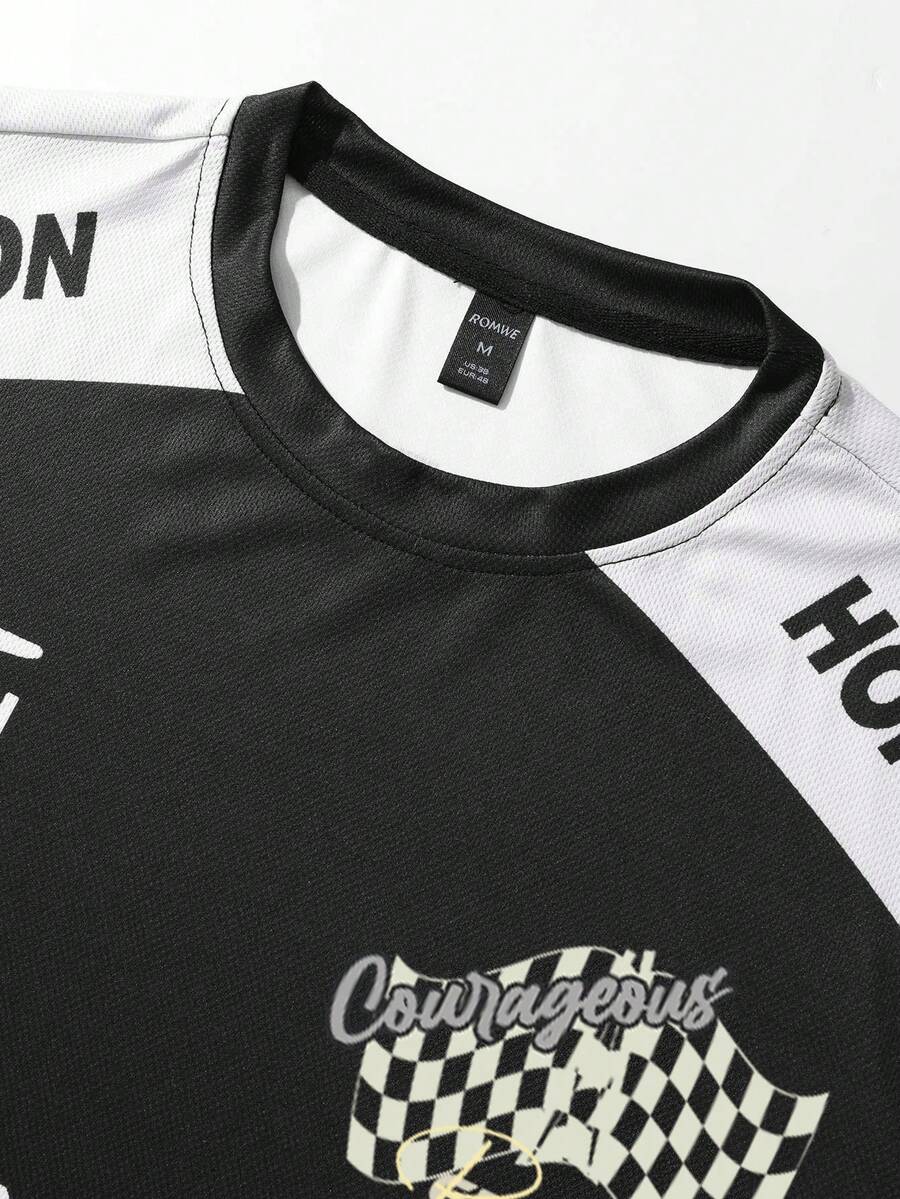 Street Life Men's Loose Fit Short Sleeve Jersey T-Shirt With Racing Print For Summer, School