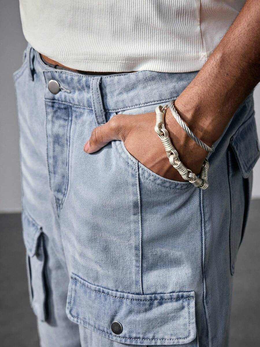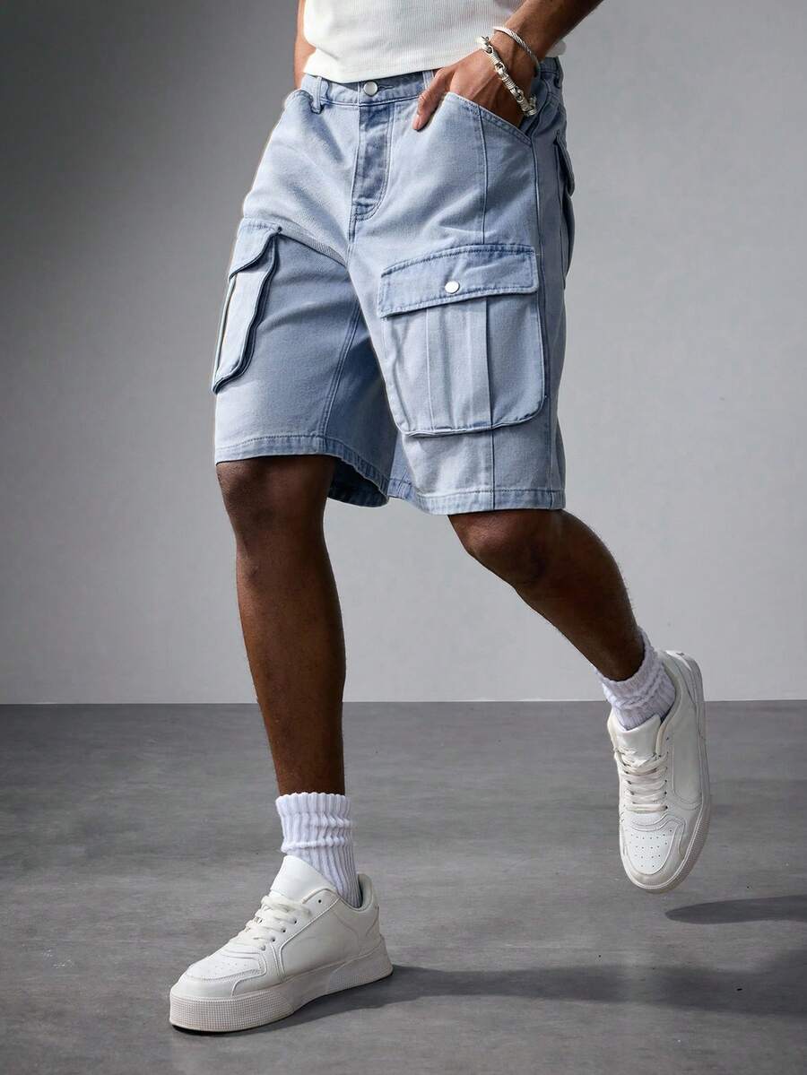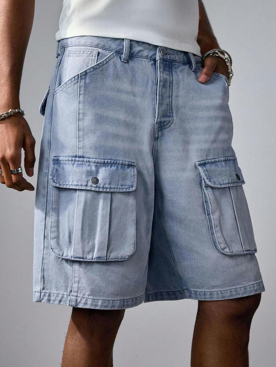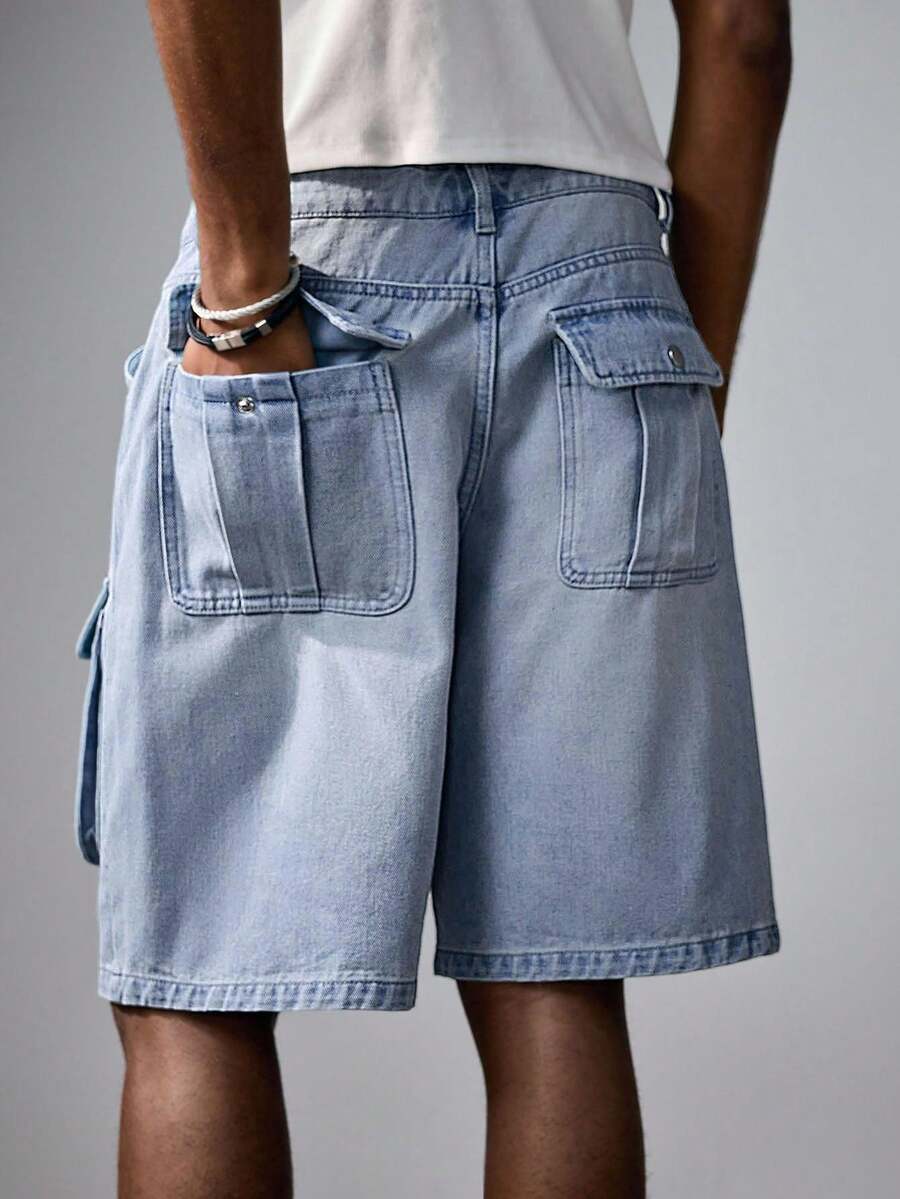 Street Life Men's Loose Fit Wide Leg Casual Denim Cargo Shorts