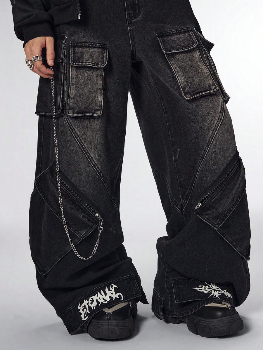 Street Life Men's Loose Fit Wide Leg Casual Multi-Pocket Distressed Jeans
