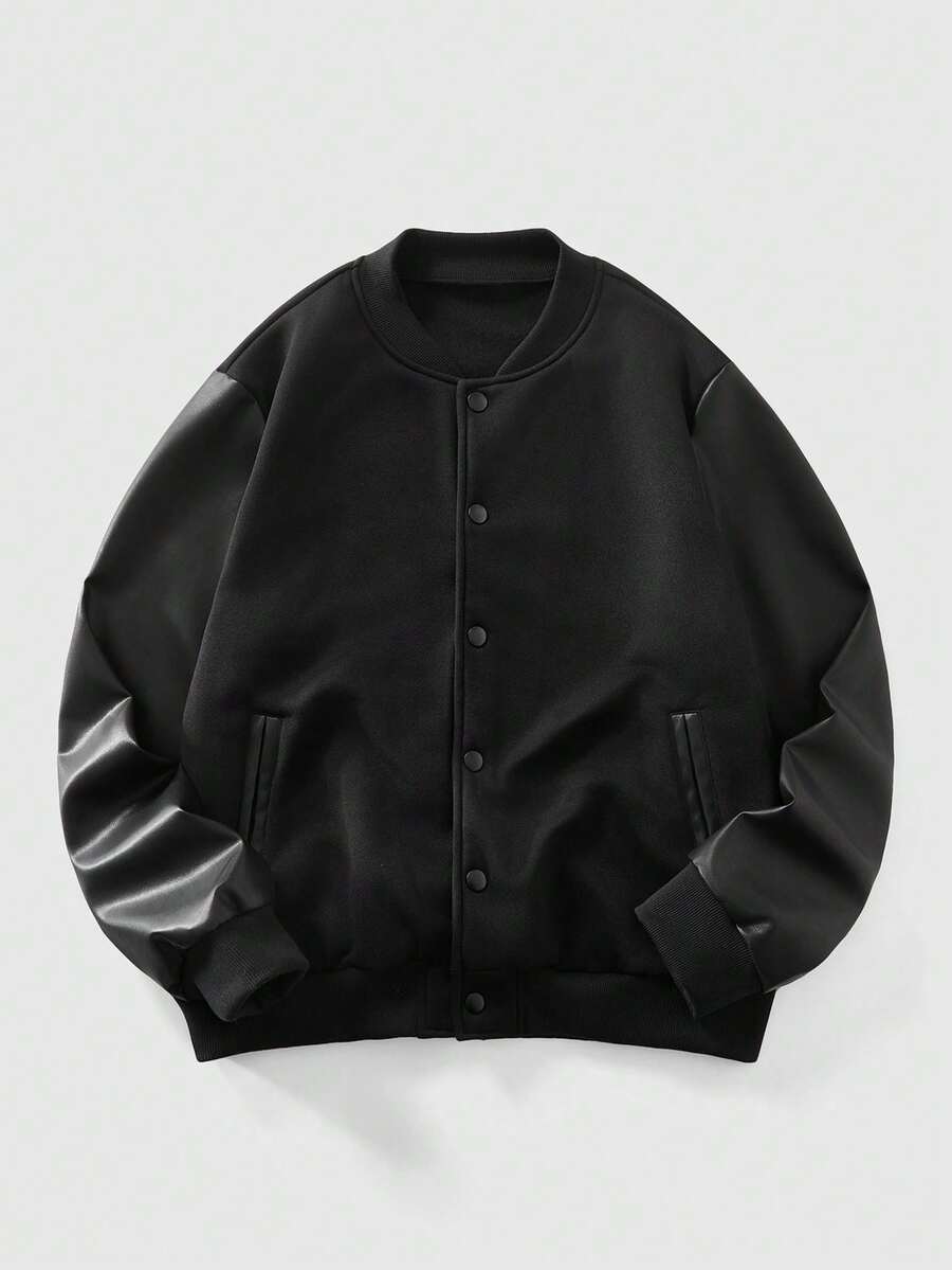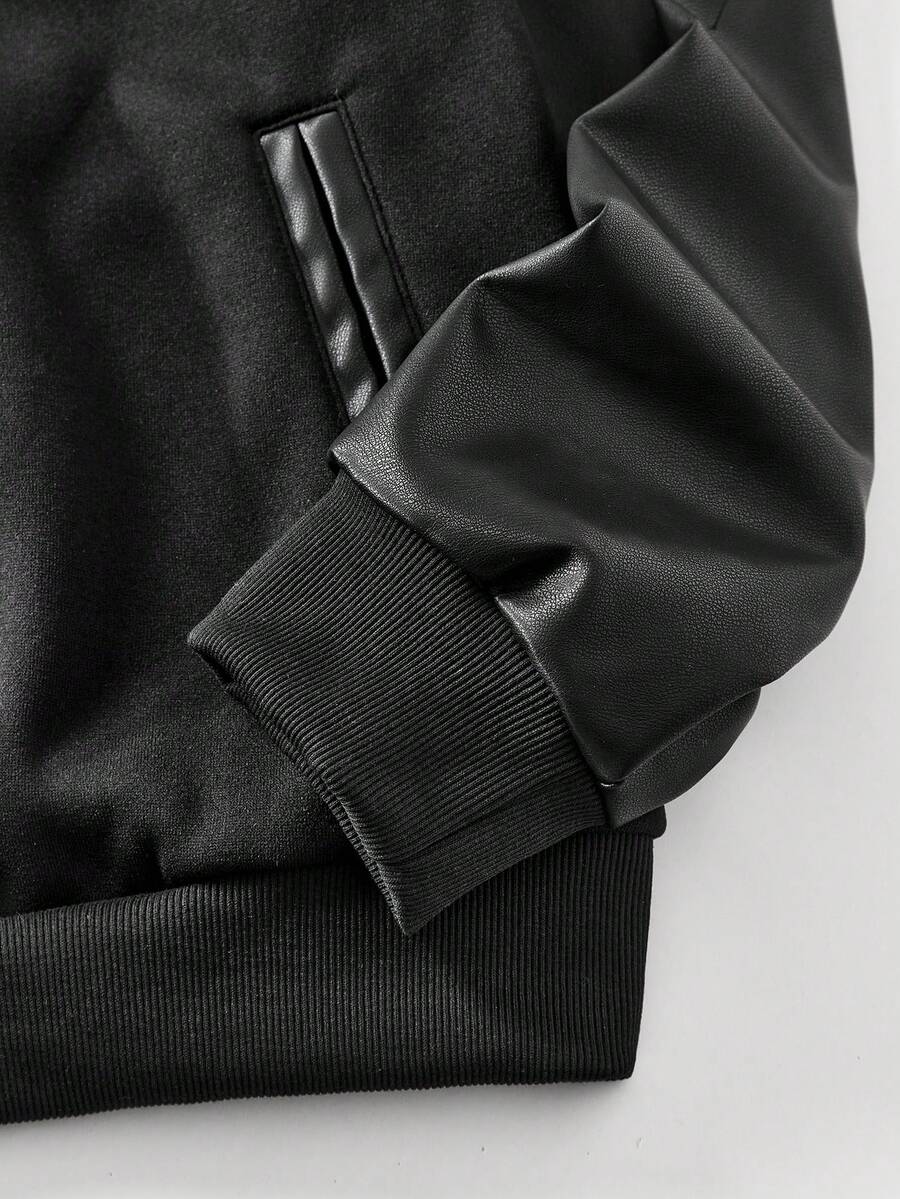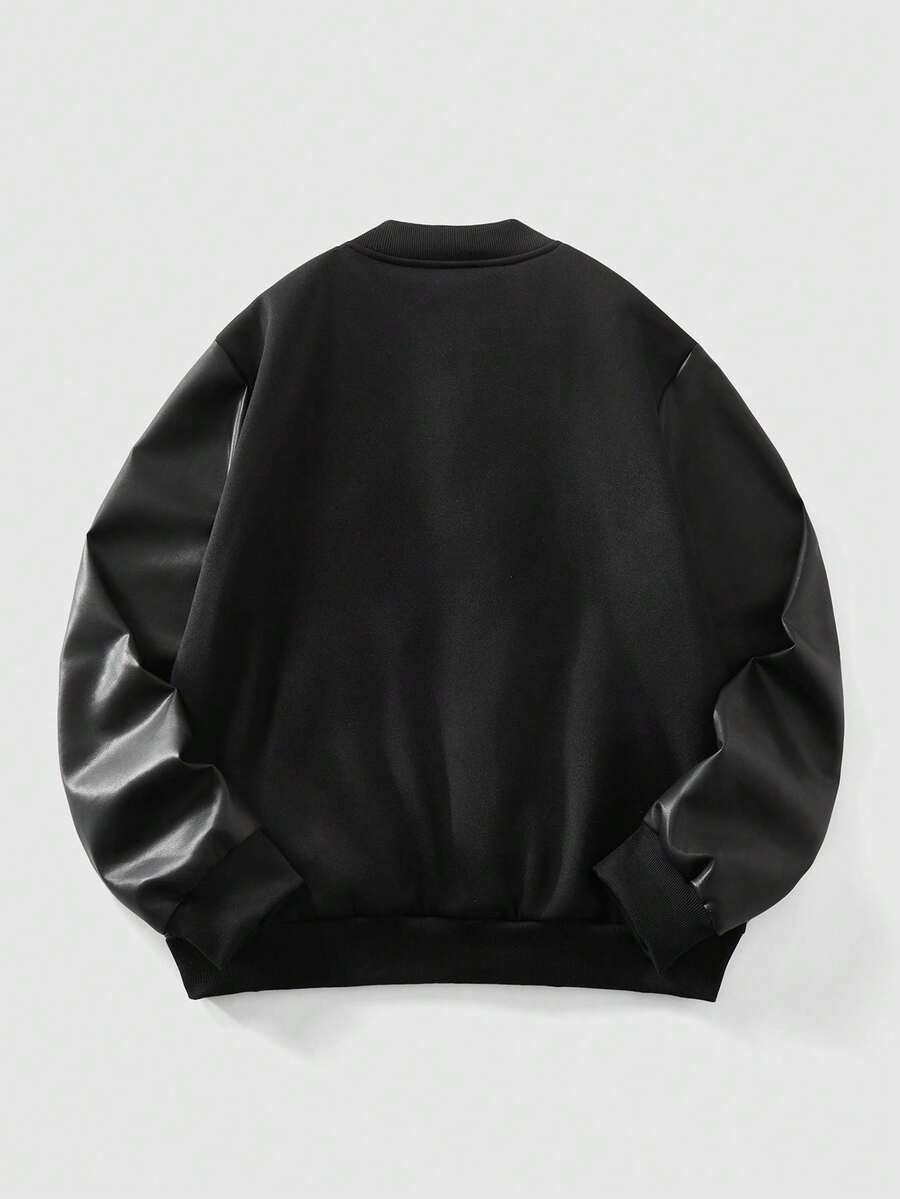 Street Life Men's PU Leather Patchwork Long Sleeve Single-Breasted Casual Baseball Jacket