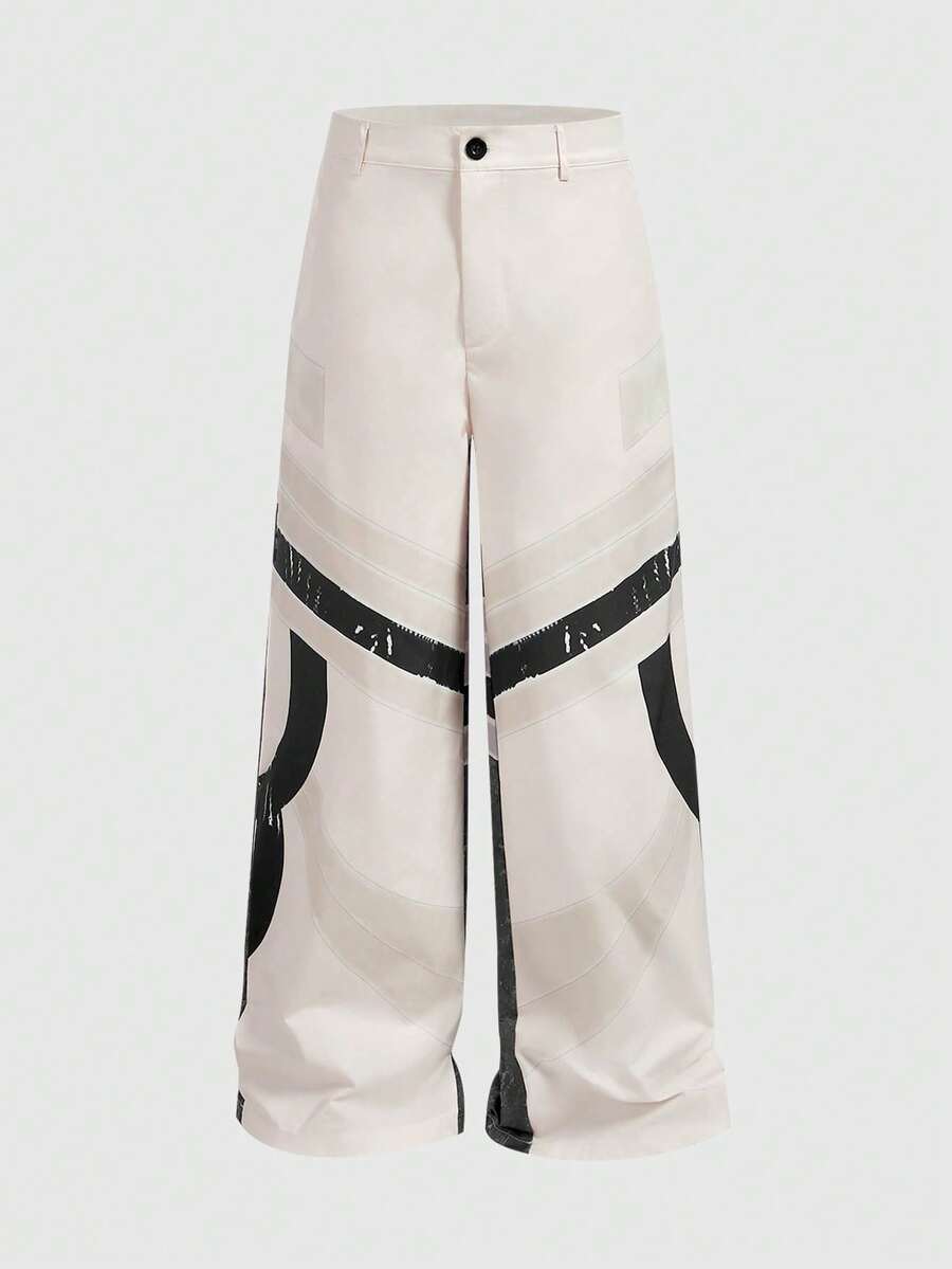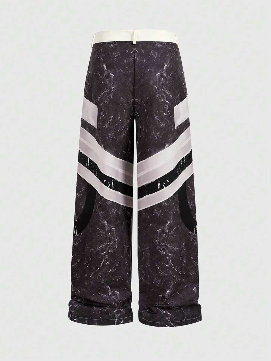 Street Life Men's Patchwork Casual Versatile Loose Wide Leg Button Pants