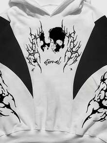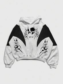 Street Life Men's Patchwork Contrast Color Print Hoodie, Fall