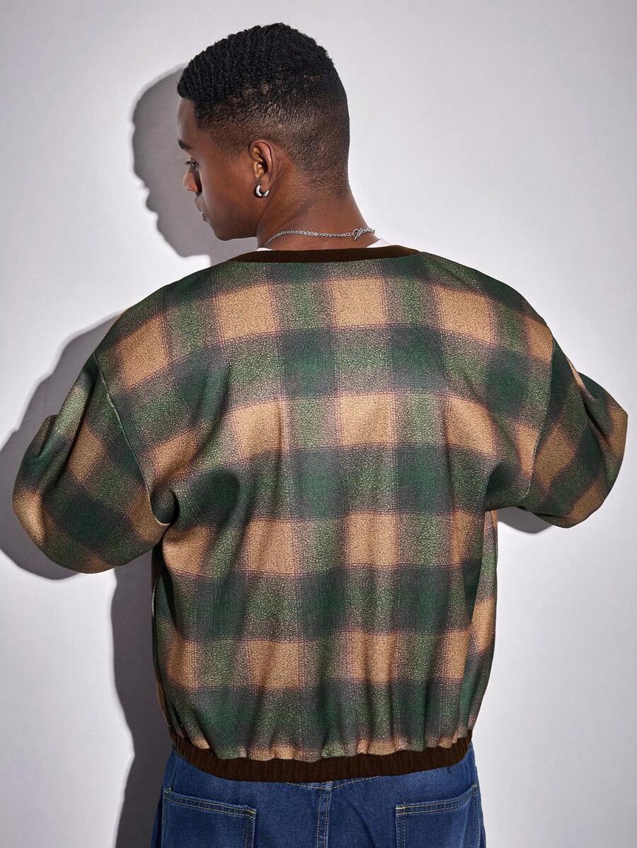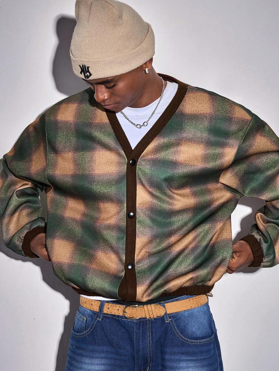 Street Life Men's Plaid Drop Shoulder Long Sleeve Single-Breasted Casual Jacket, Autumn/Winter
